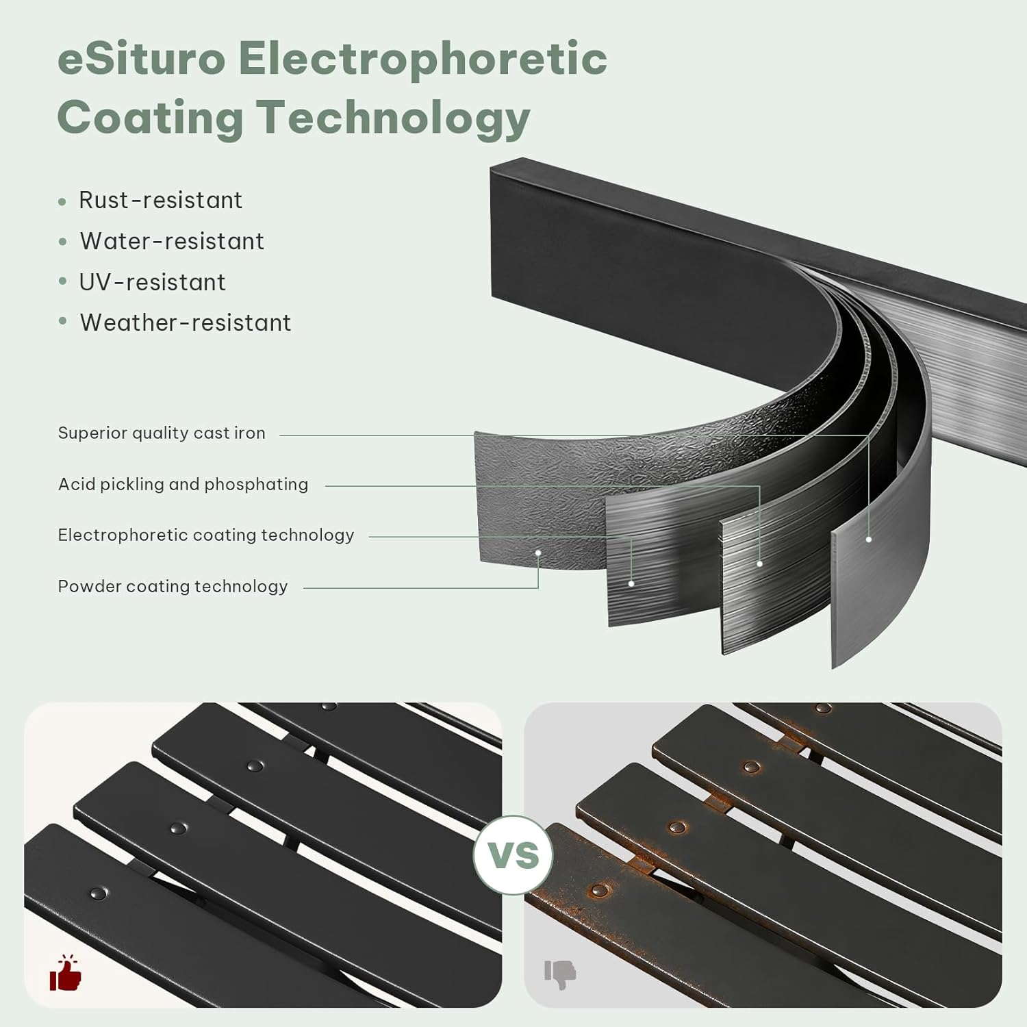 Atsparus oro sąlygoms: komplektas pagamintas iš milteliniu būdu dengto metalo, todėl yra tvirtas, atsparus UV spinduliams ir vandeniui. Nereikia rūpintis rūdimis ar spalvos blukimu. Valymui pakanka drėgnos šluostės.