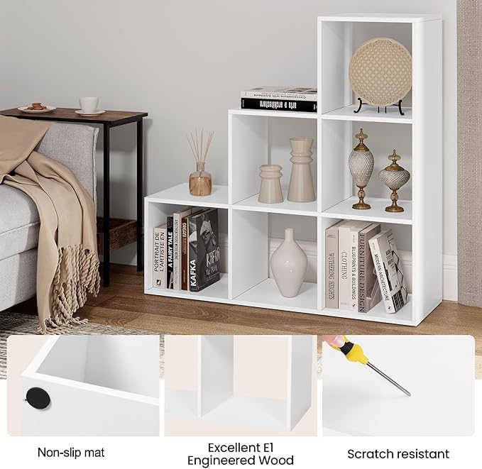Lengvas surinkimas: su iliustruota instrukcija ir sunumeruotomis detalėmis lengvai surinksite šią lentyną su 6 kubo formos skyriais.