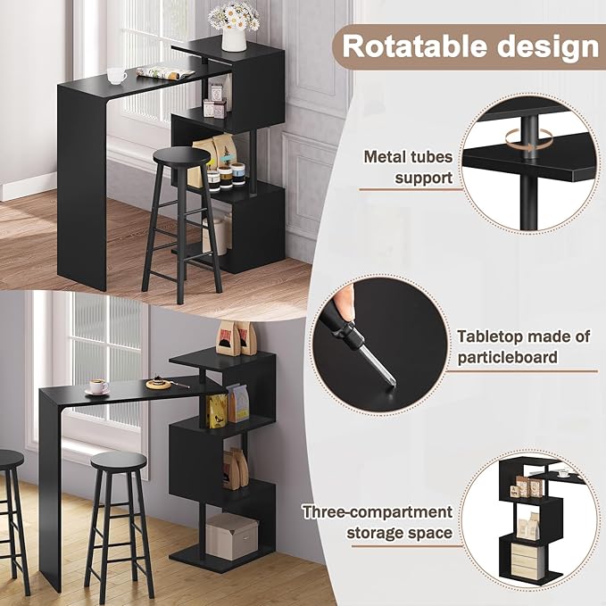 UNIVERSALUS NAUDOJIMAS: Šis baldas gali būti naudojamas kaip baro stalas, vakarėlių stalas ar valgomasis stalas. Puikiai tinka bistro, virtuvei, svetainei ar net biurui.