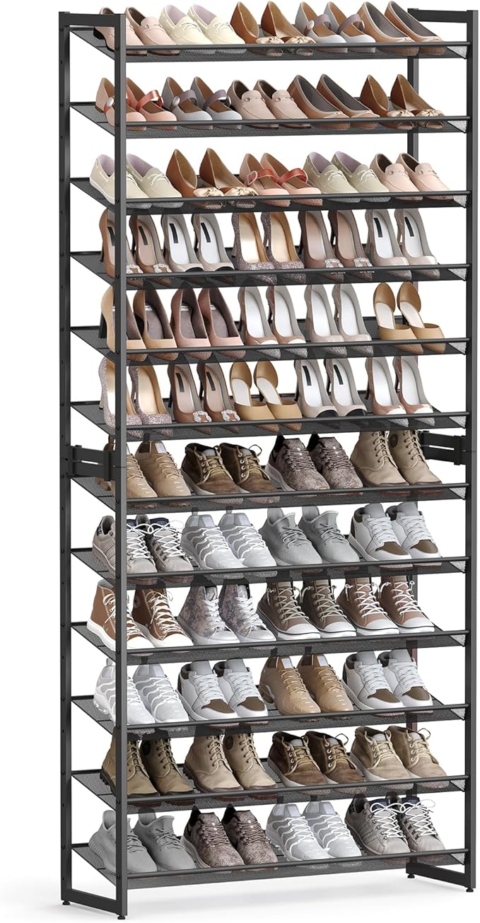 【DIDELĖ TALPA】 Dydis: 30,7 x 92,5 x 223 cm. Ši didelė 12 aukštų batų lentyna gali talpinti iki 60 porų moteriškų arba 48 poras vyriškų batų, padėdama suvaldyti batų chaosą jūsų namuose.