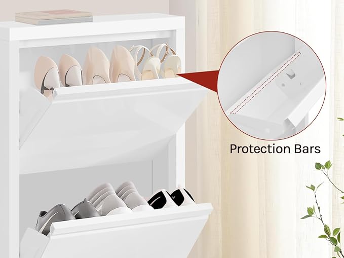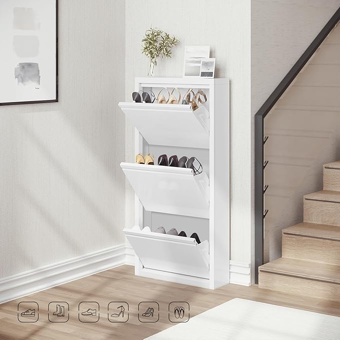 Kompaktiškas dydis: aukšta ir siaura batų spintelė užima labai mažai grindų ploto, tačiau turi 3 paslėptus laikymo lygius tvarkingam avalynės laikymui. Puikiai tinka kampams ar siauriems praėjimams, pvz., bendrabučiuose ar mažuose butuose.