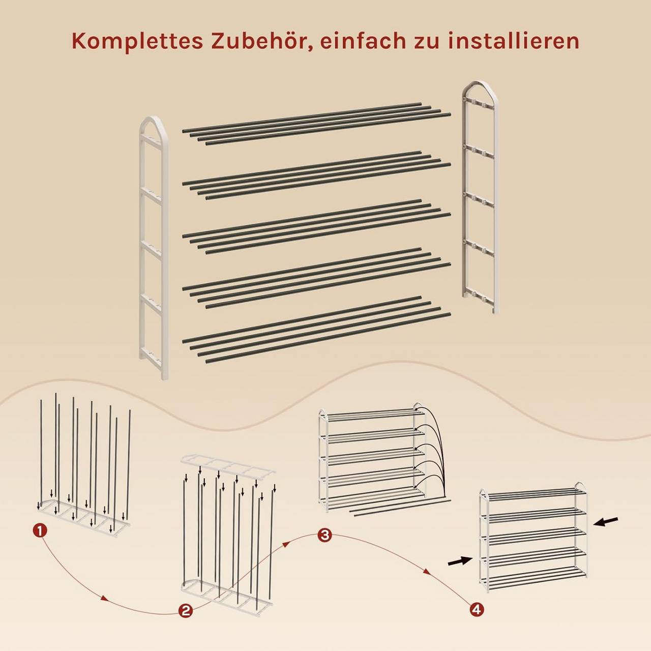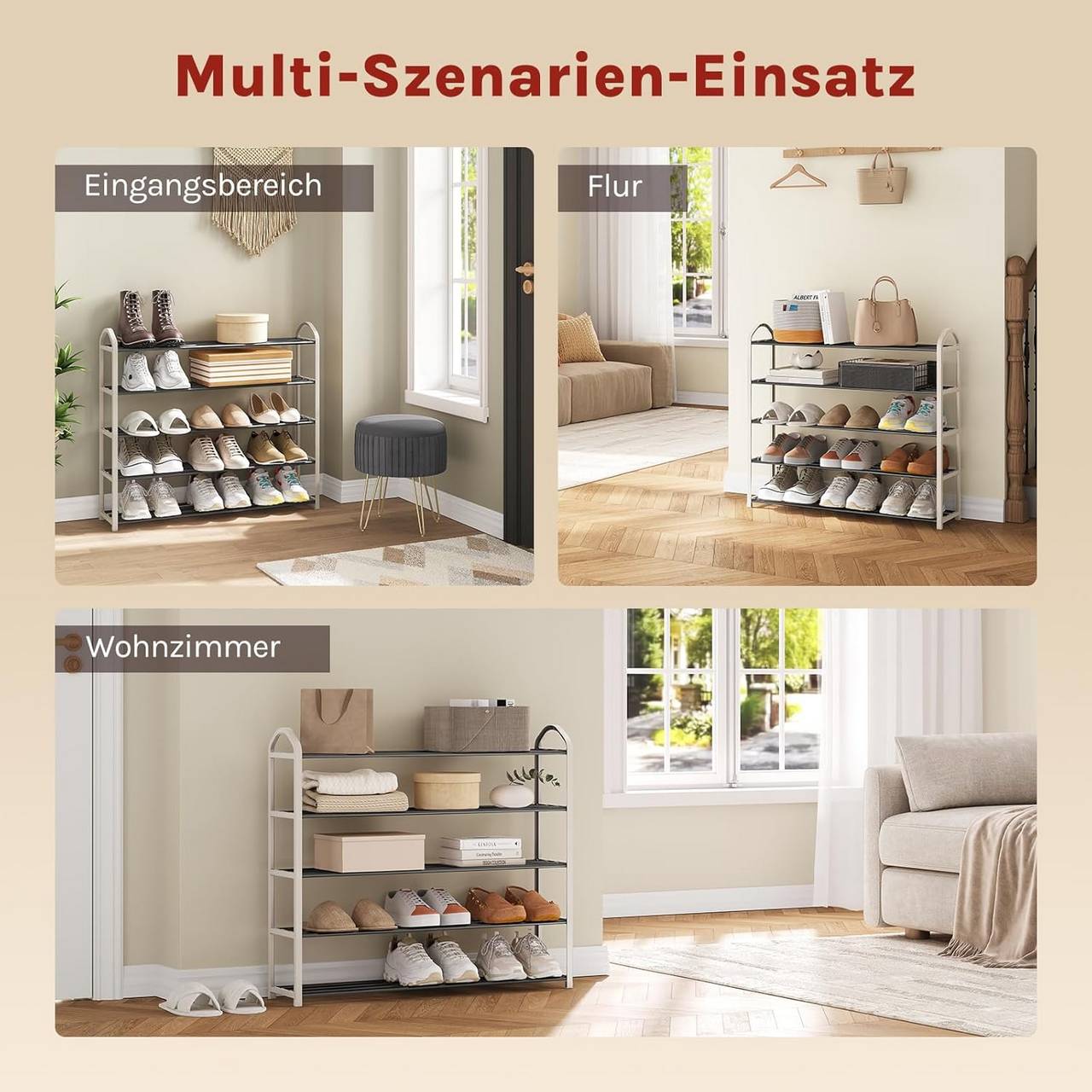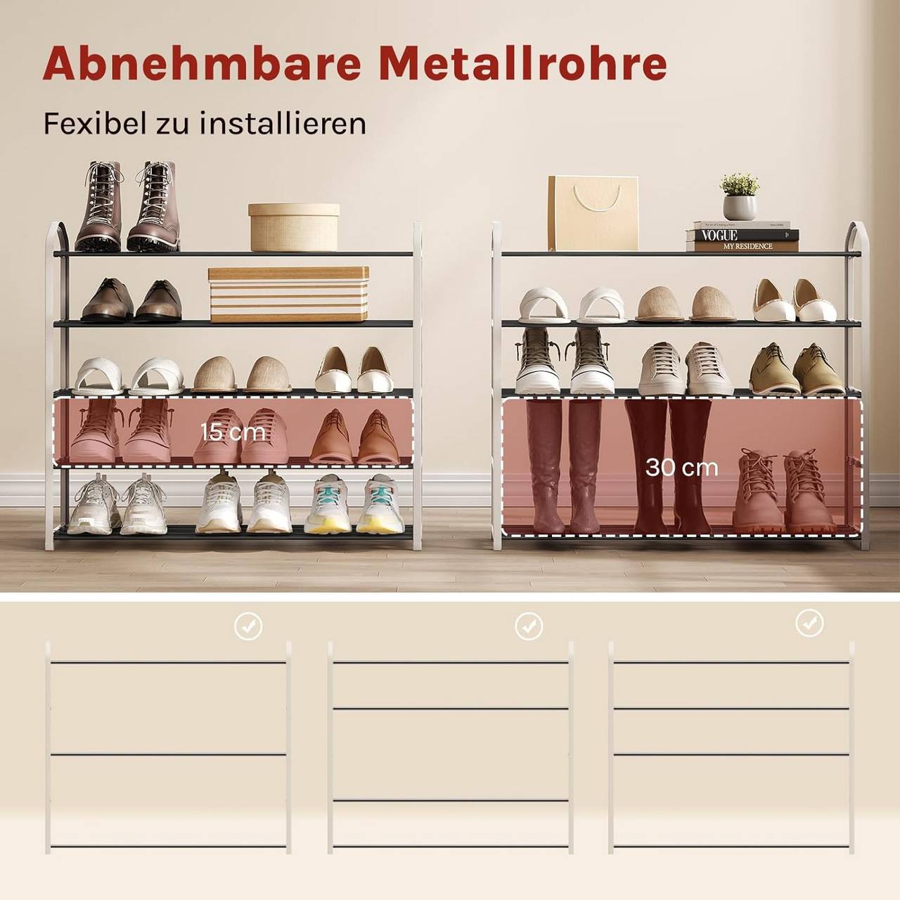 Didelė talpa: 5 aukštų lentyna suteikia daug vietos batams ar kitiems daiktams. Vieno aukšto aukštis – 17 cm. Lentynos yra nuimamos, todėl galima pritaikyti vietą aukštesniems batams, pvz., auliniams.