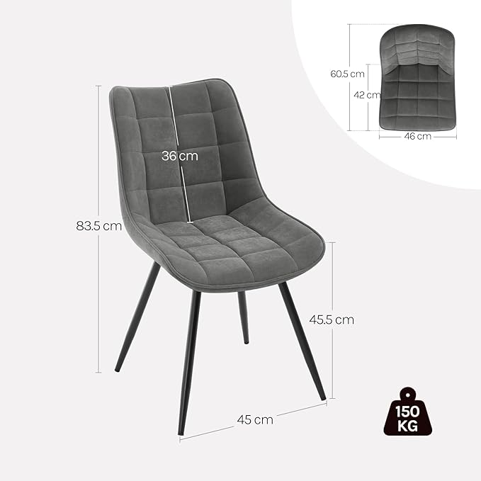 Tvirta valgomojo kėdė: kėdė turi patvarų veliūrinį paviršių, didelio tankio putų paminkštinimą ir tvirtas metalines kojeles. Visa tai užtikrina stabilumą ir ilgaamžiškumą. Maksimali statinė apkrova: 150 kg.