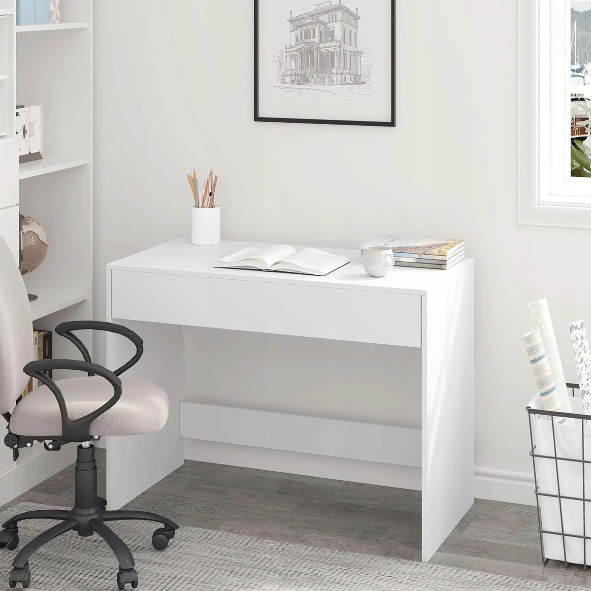 Rašomasis stalas, 100 x 50 x 75 cm, baltas