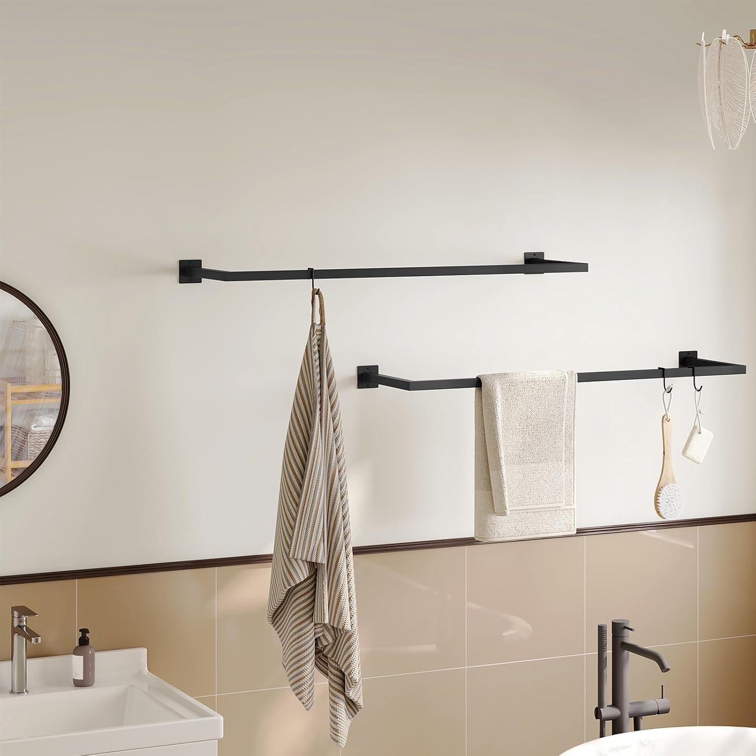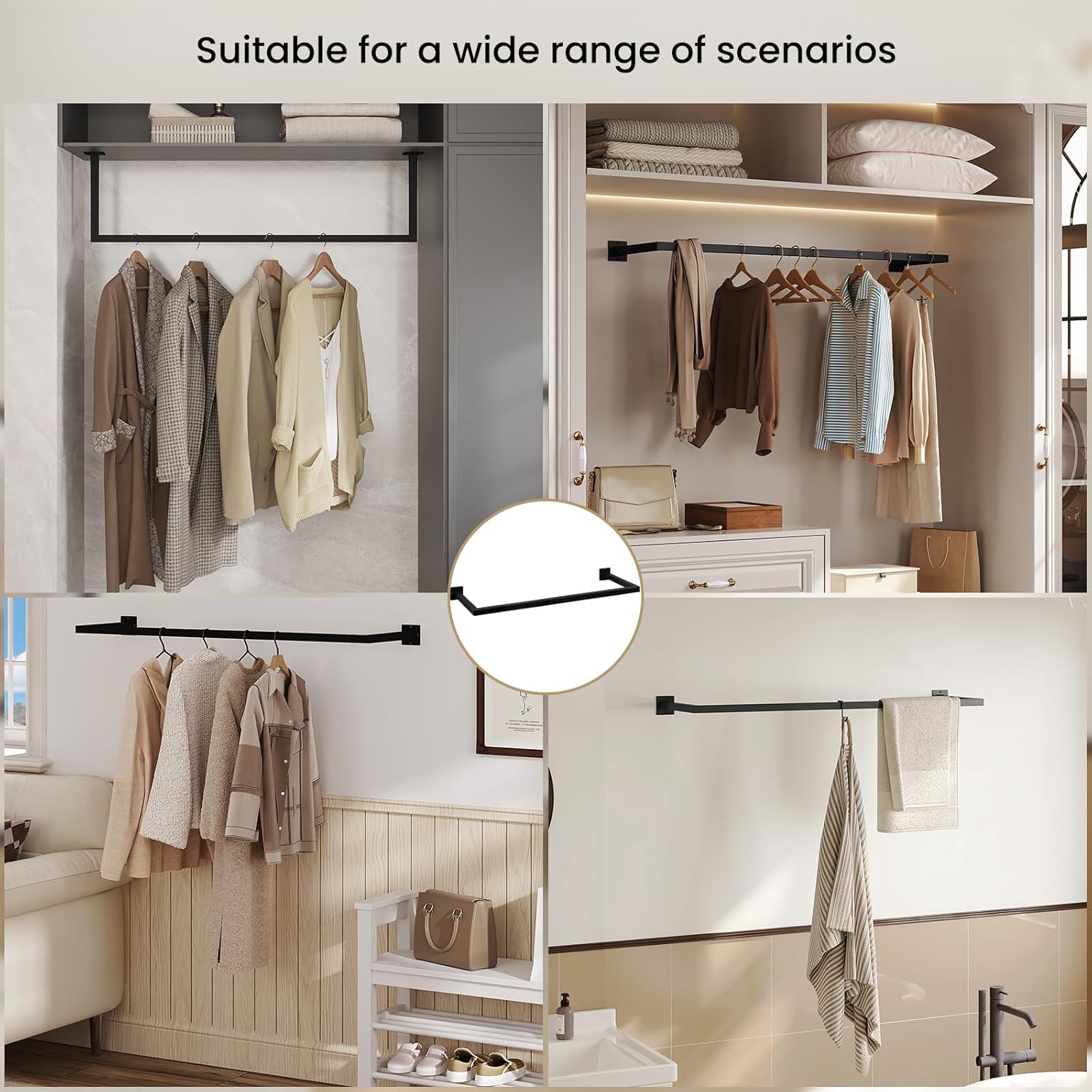 UNIVERSALUS PRITAIKYMAS: kabyklą galite naudoti kaip rankšluosčių laikiklį vonios kambaryje, drabužių džiovyklę skalbykloje, kabykla koridoriuje, ekspozicine juosta drabužių parduotuvėje ar kaip pakabinamą laikymo strypą virtuvėje ar uždaroje terasoje.