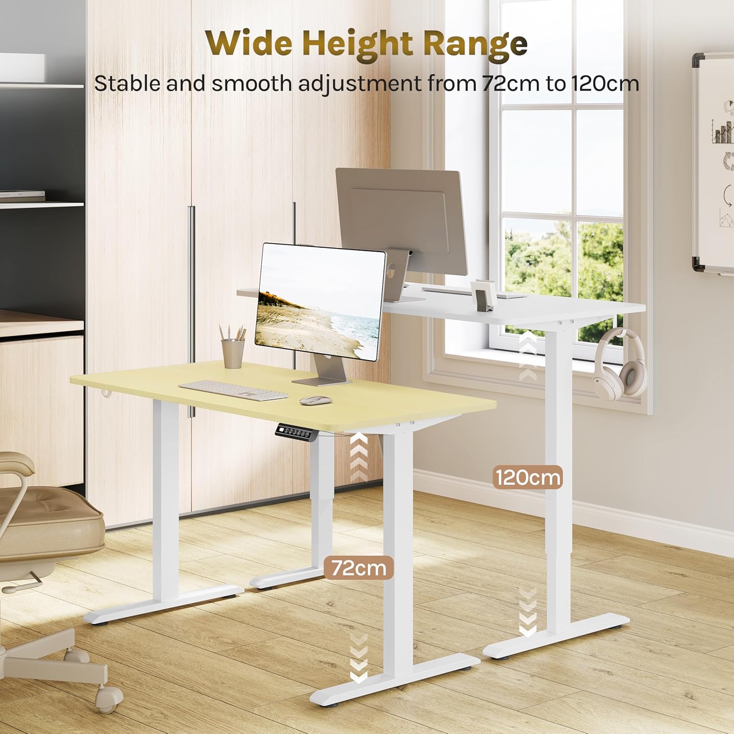 Sveikas darbas: elektrinis WOLTU stalas reguliuojamas aukštyje nuo 72 iki 120 cm vieno mygtuko paspaudimu, todėl galite dirbti tiek sėdėdami, tiek stovėdami. Išsaugomos 4 aukščio pozicijos leidžia greitai nustatyti patogiausią darbo aukštį.
