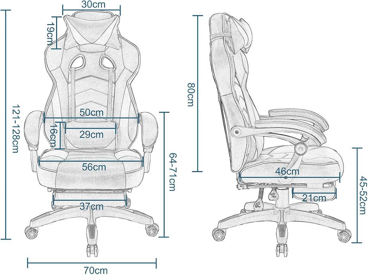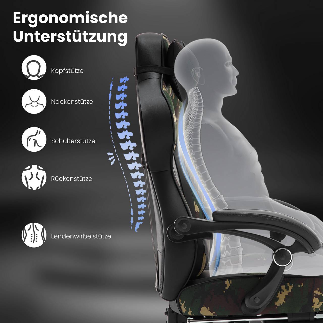 Padeda išlaikyti taisyklingą laikyseną: ergonomiškas dizainas su galvos ir juosmens pagalvėlėmis palaiko nugarą ir padeda išlaikyti taisyklingą laikyseną net ilgai sėdint. Porankiai juda kartu su atlošu, todėl atsilošus galima dar labiau atsipalaiduoti.