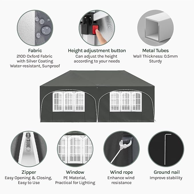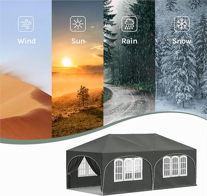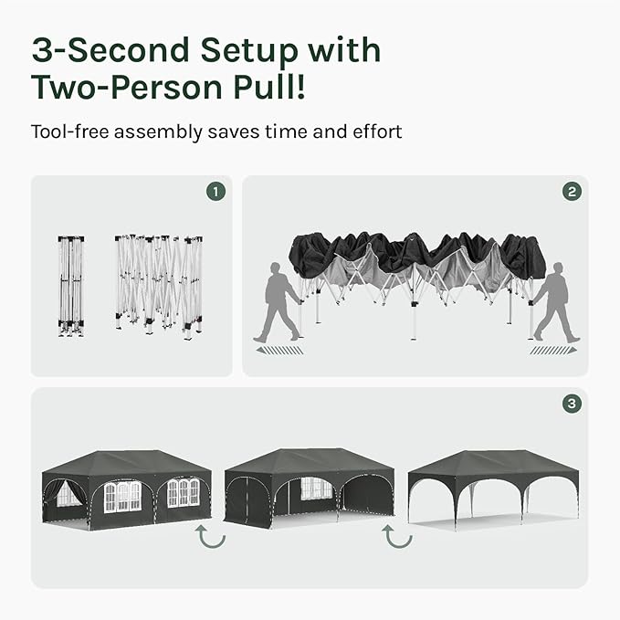 Puikus pasirinkimas renginiams: lenkti stogo kraštai atrodo estetiškai ir išskirtinai. 3 x 3 m sodo pavėsinė talpina 6–10 žmonių, todėl puikiai tinka šeimos susibūrimams, piknikams, sporto renginiams, turgeliams, kepsnių vakarėliams, paplūdimio šventėms ir kt.