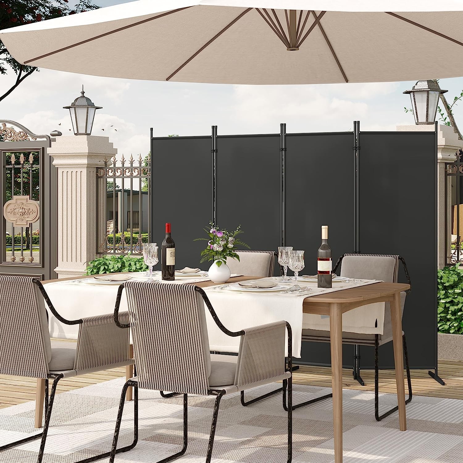 Funkcionalumas: WOLTU širma apsaugo nuo saulės ir vėjo. Ji gali būti naudojama kaip kambario pertvara, skirta laikinai atskirti erdves, arba kaip privatumo užtvara tiek viduje, tiek lauke.