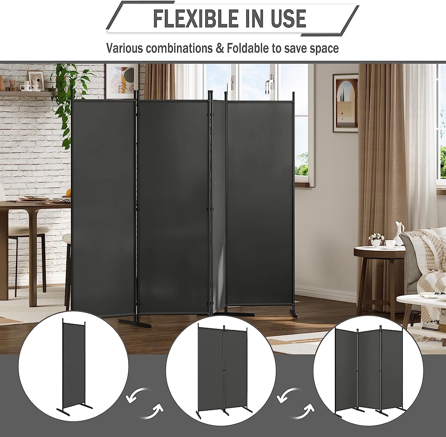 Sulankstoma ir lanksti: dėl modulinės konstrukcijos širmą galima reguliuoti pagal norimą kampą ar formą, o nenaudojant – sulankstyti ir patogiai laikyti. Lengvas svoris leidžia ją lengvai perkelti.
