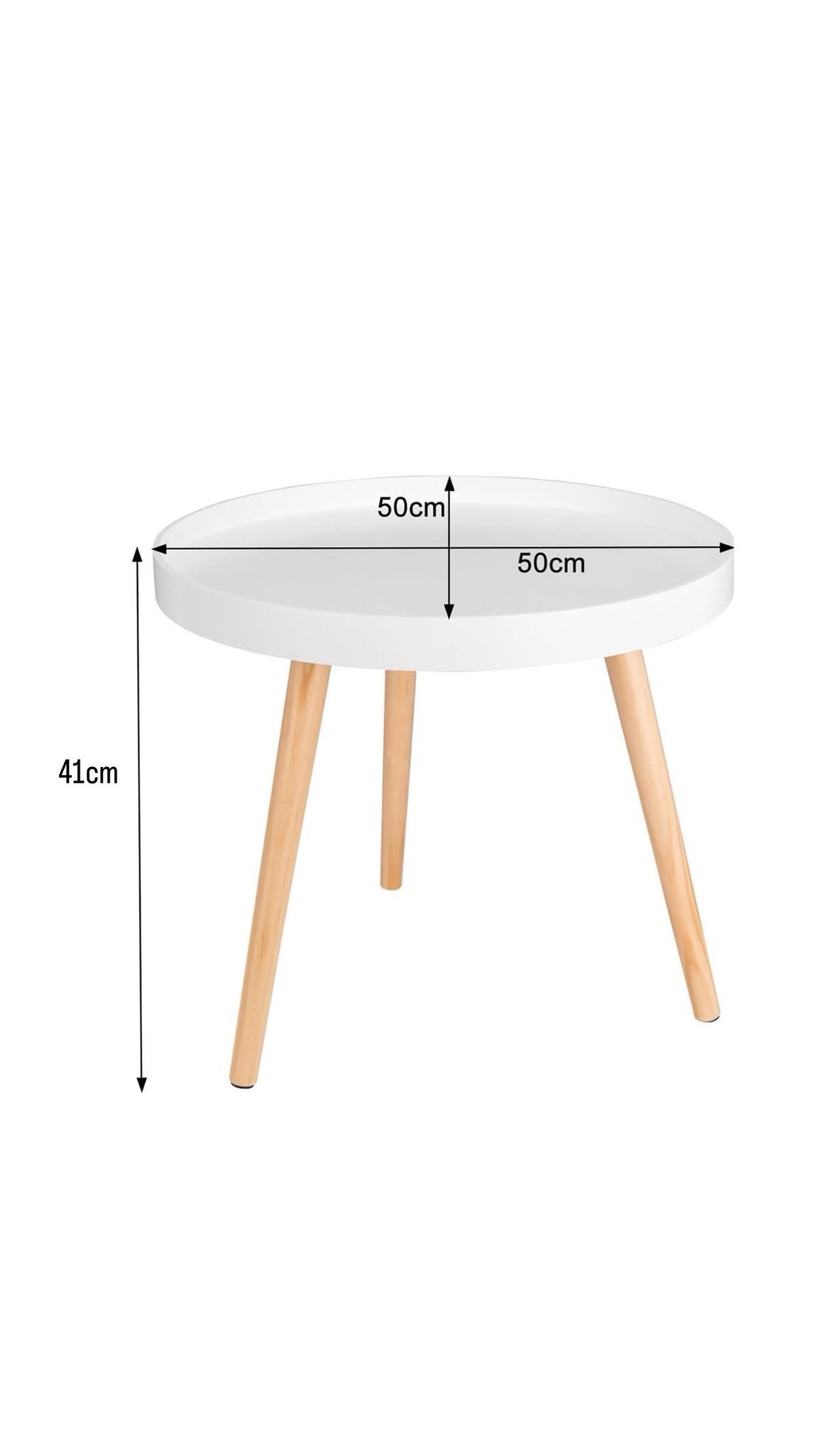 AUKŠTOS KOKYBĖS MEDŽIAGOS: Šoninis staliukas pagamintas iš aukštos kokybės, ekologiškos E1 klasės MDF plokštės, o kojelės – iš masyvios medienos. Vandeniui atspari dažų danga suteikia paviršiui glotnumo, atsparumą korozijai ir lengvą valymą. Bendri matmenys: 50 × 41 cm (skersmuo × aukštis).