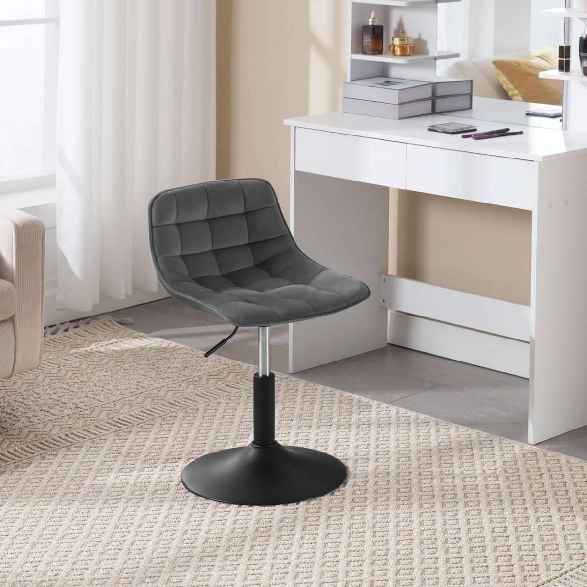 Praktiška ir daugiafunkcė: klasikinė spalva ir elegantiškas dizainas sujungia vintažinį ir modernų stilių, todėl kėdė tinka įvairioms paskirtims – kaip kėdė prie sofos, valgomojo kėdė, taburetė prie tualetinio staliuko, namų biuro kėdė, pusryčių kėdutė virtuvėje, kėdė prie baro ar stalviršio ir kt.
