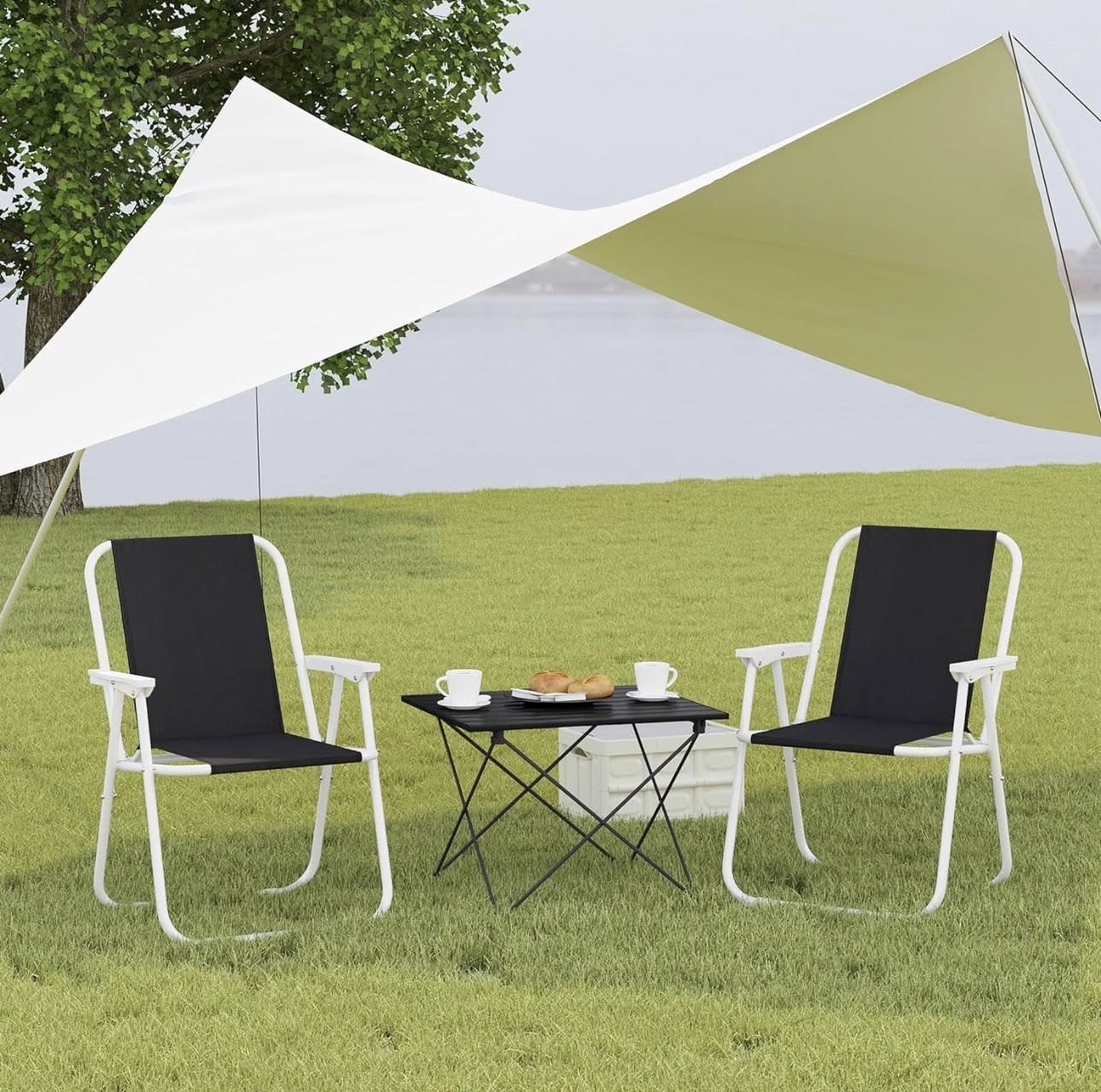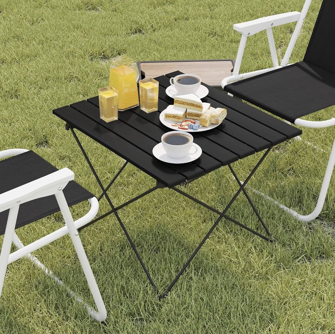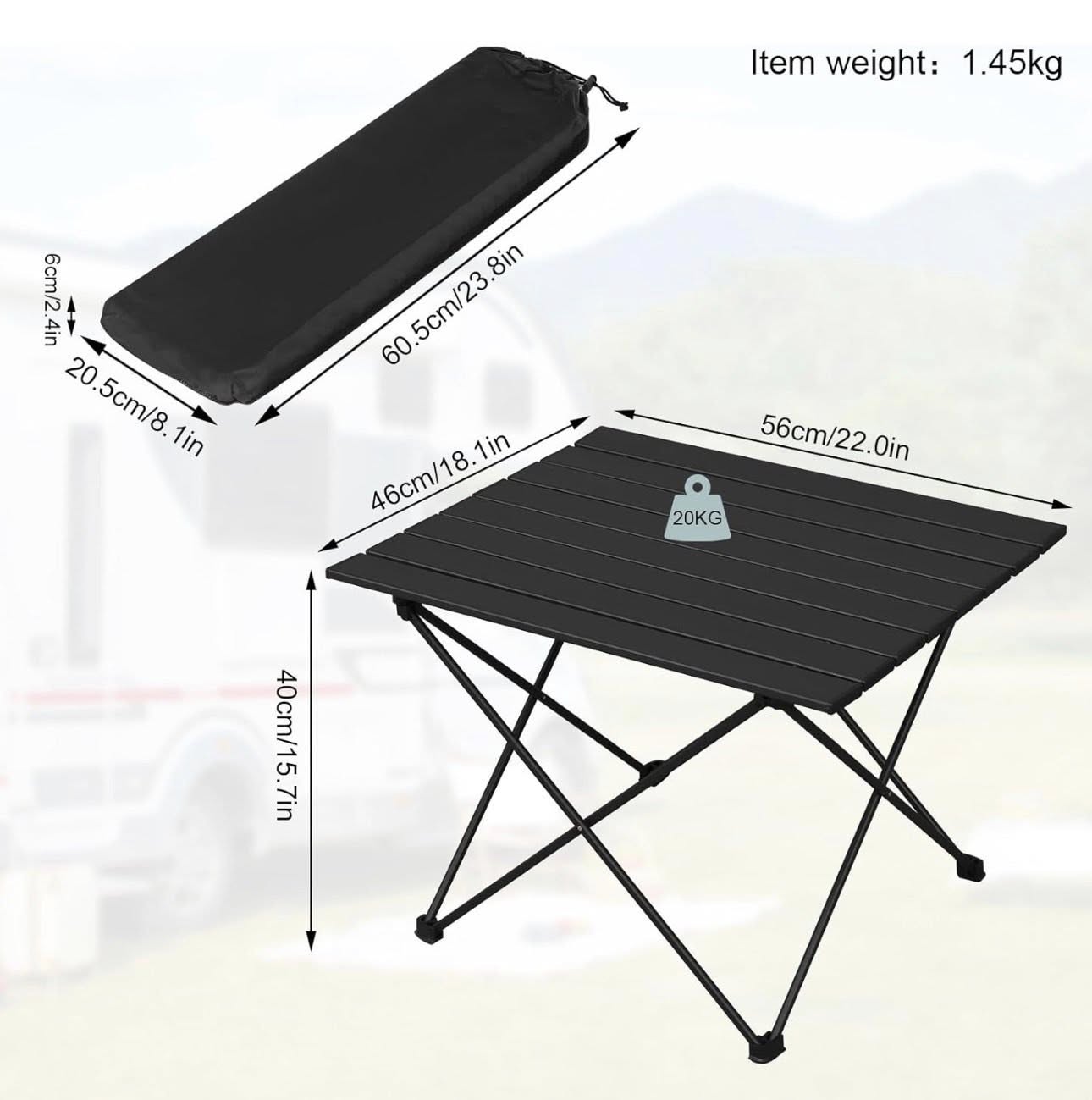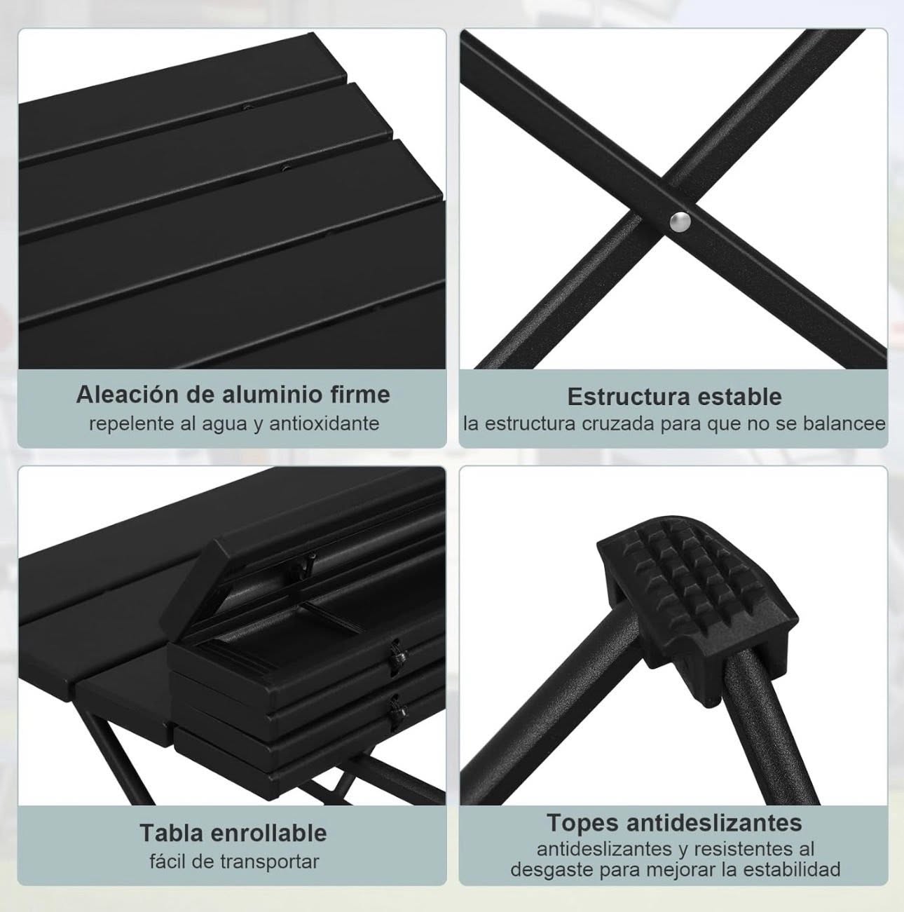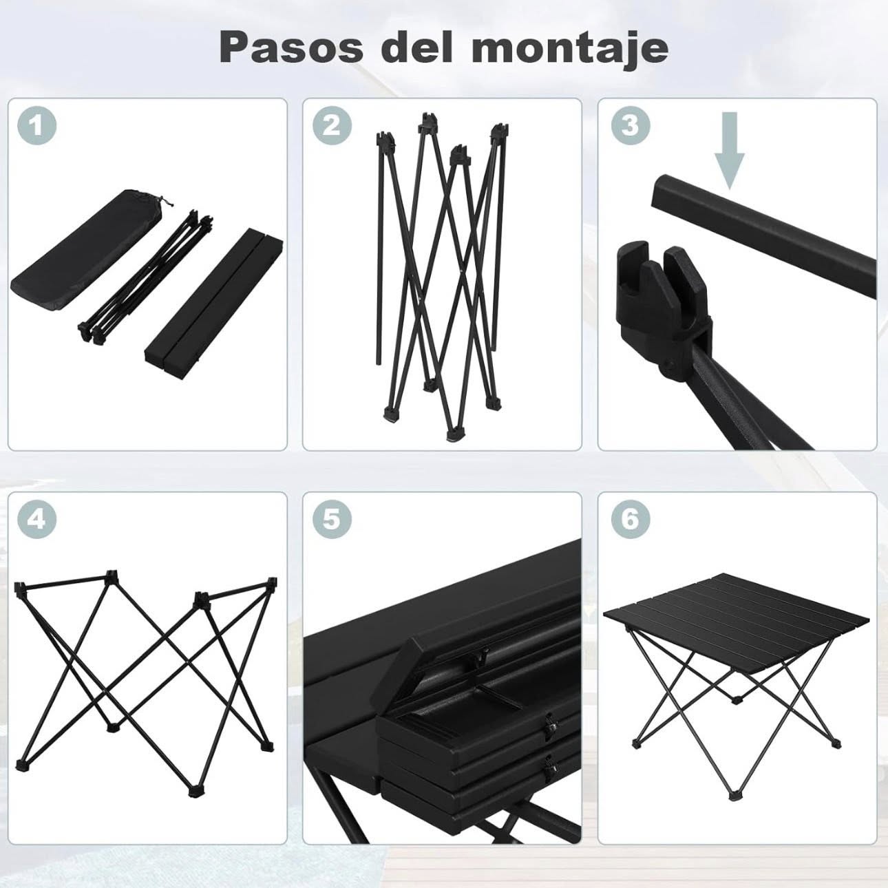 WOLTU Kempingo stalas, aliuminis, su nešiojimo krepšiu, 56x46x40cm, juodas