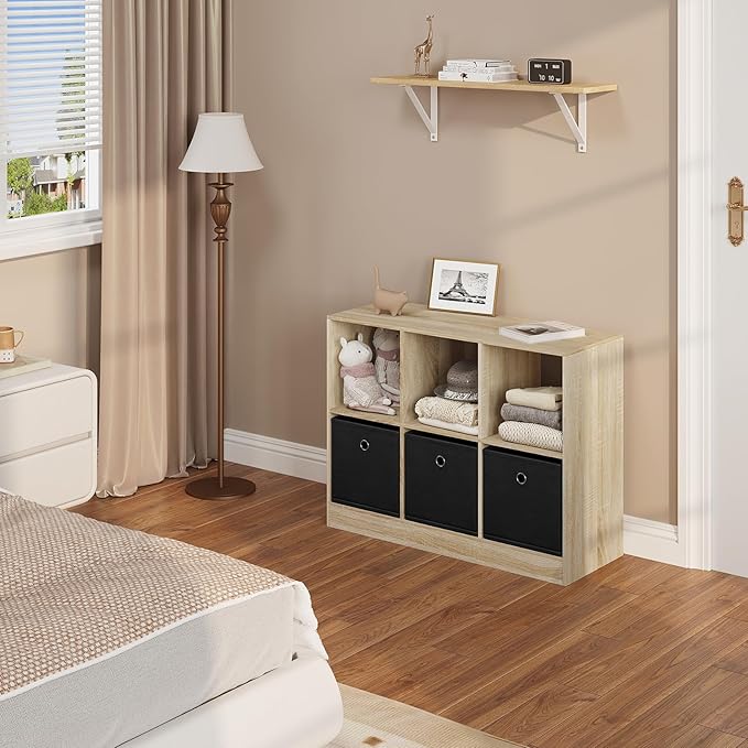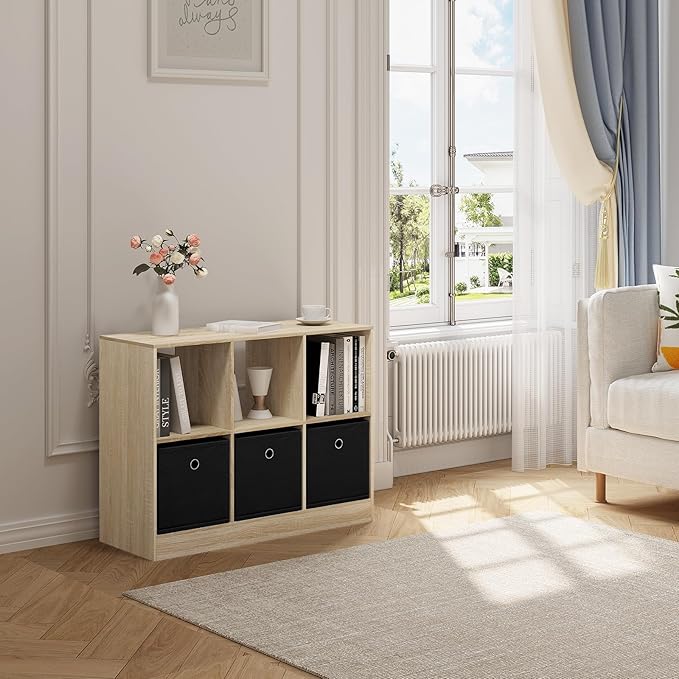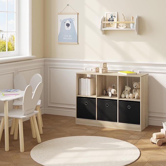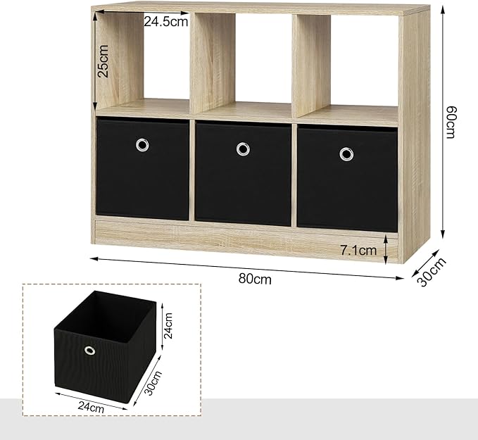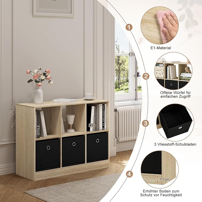 Didelė talpa: platus viršutinis paviršius ir 6 atviros lentynos suteikia daug vietos knygoms, žurnalams, CD, žaislams, drabužiams ar dekoracijoms. Komplekte esantys 3 neaustinio audinio stalčiukai padeda dar patogiau susitvarkyti daiktus.