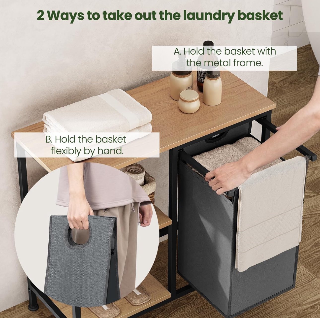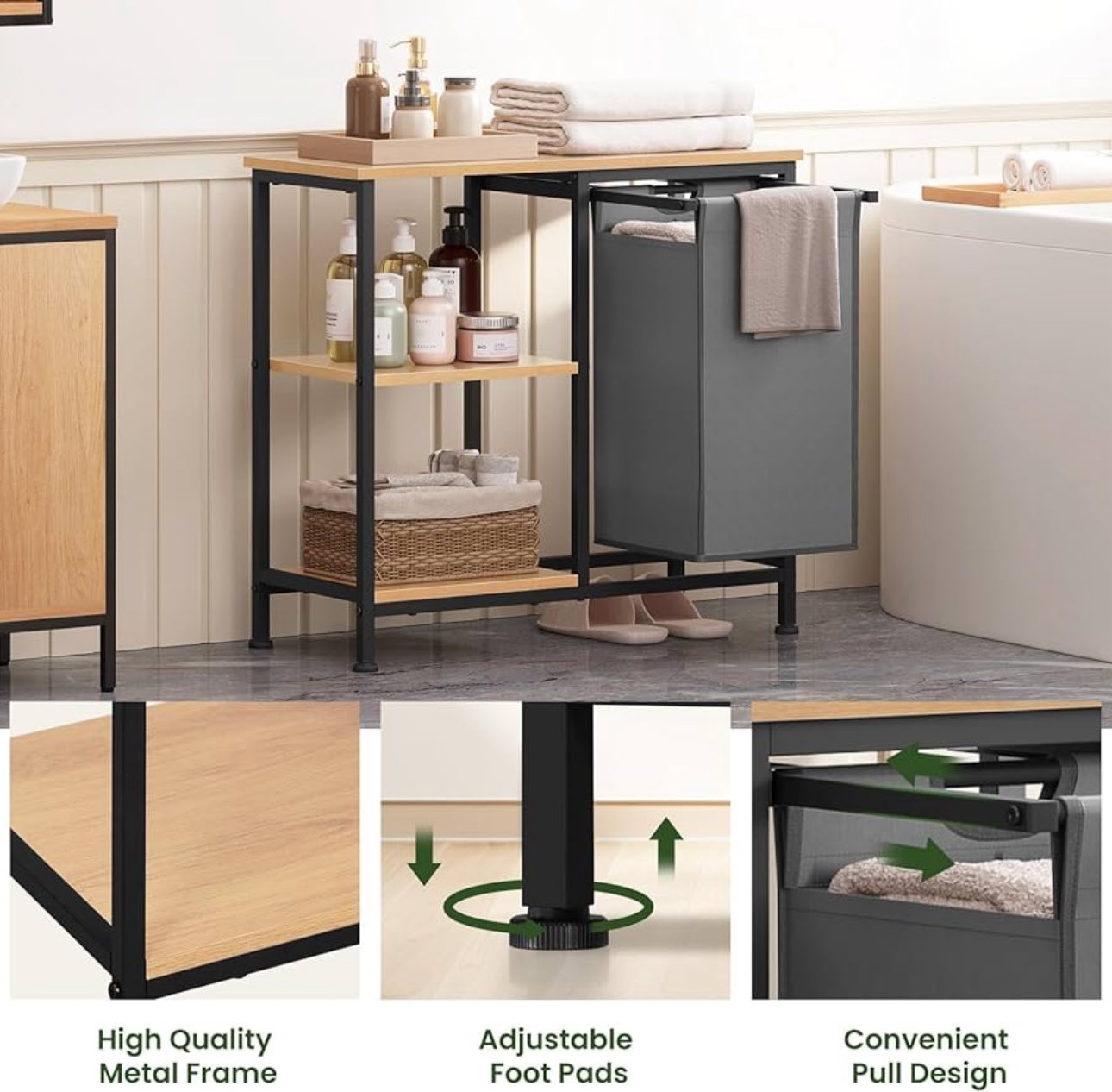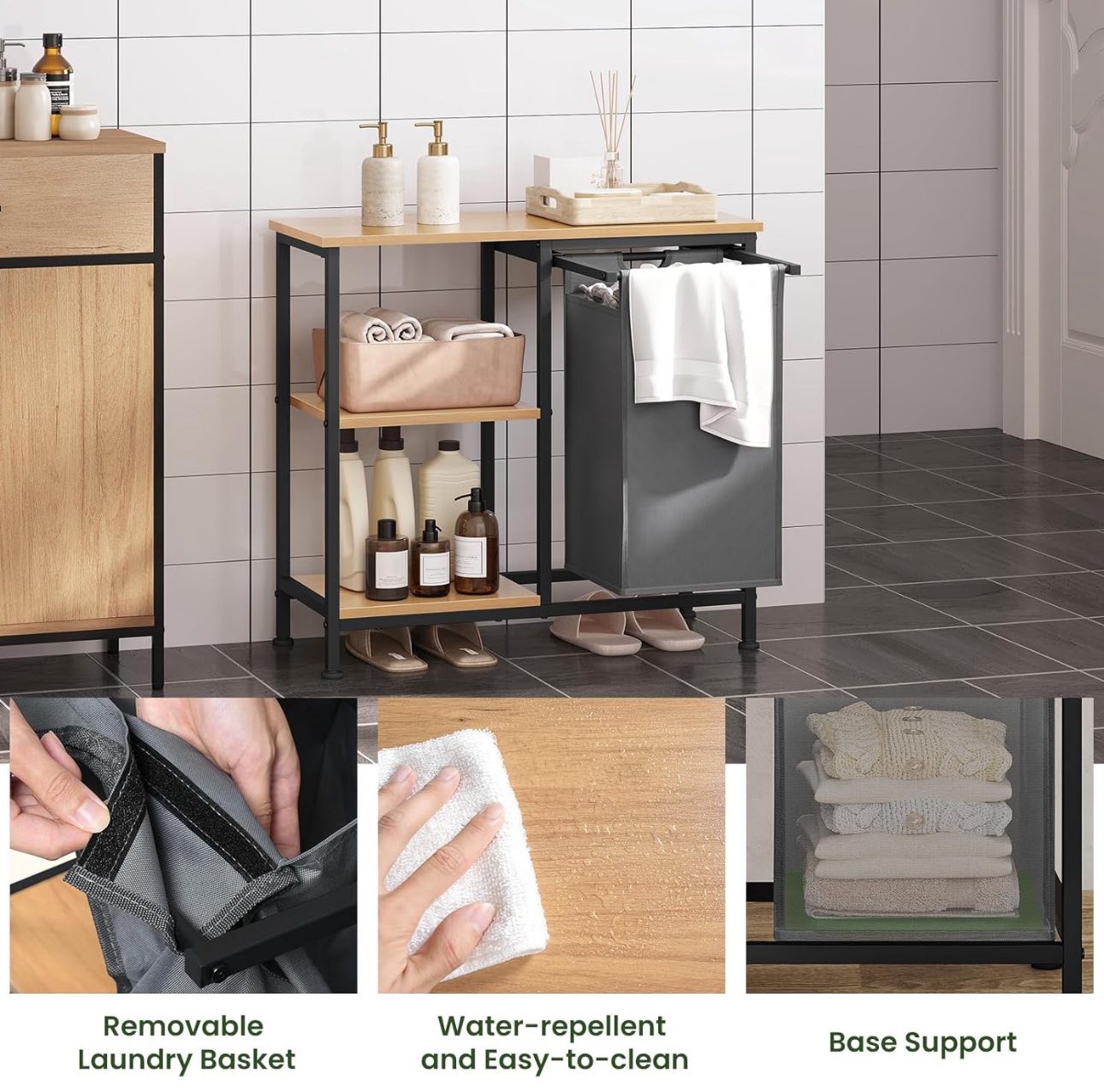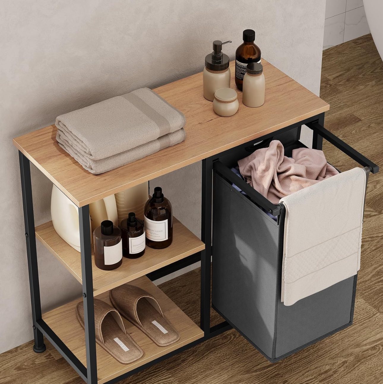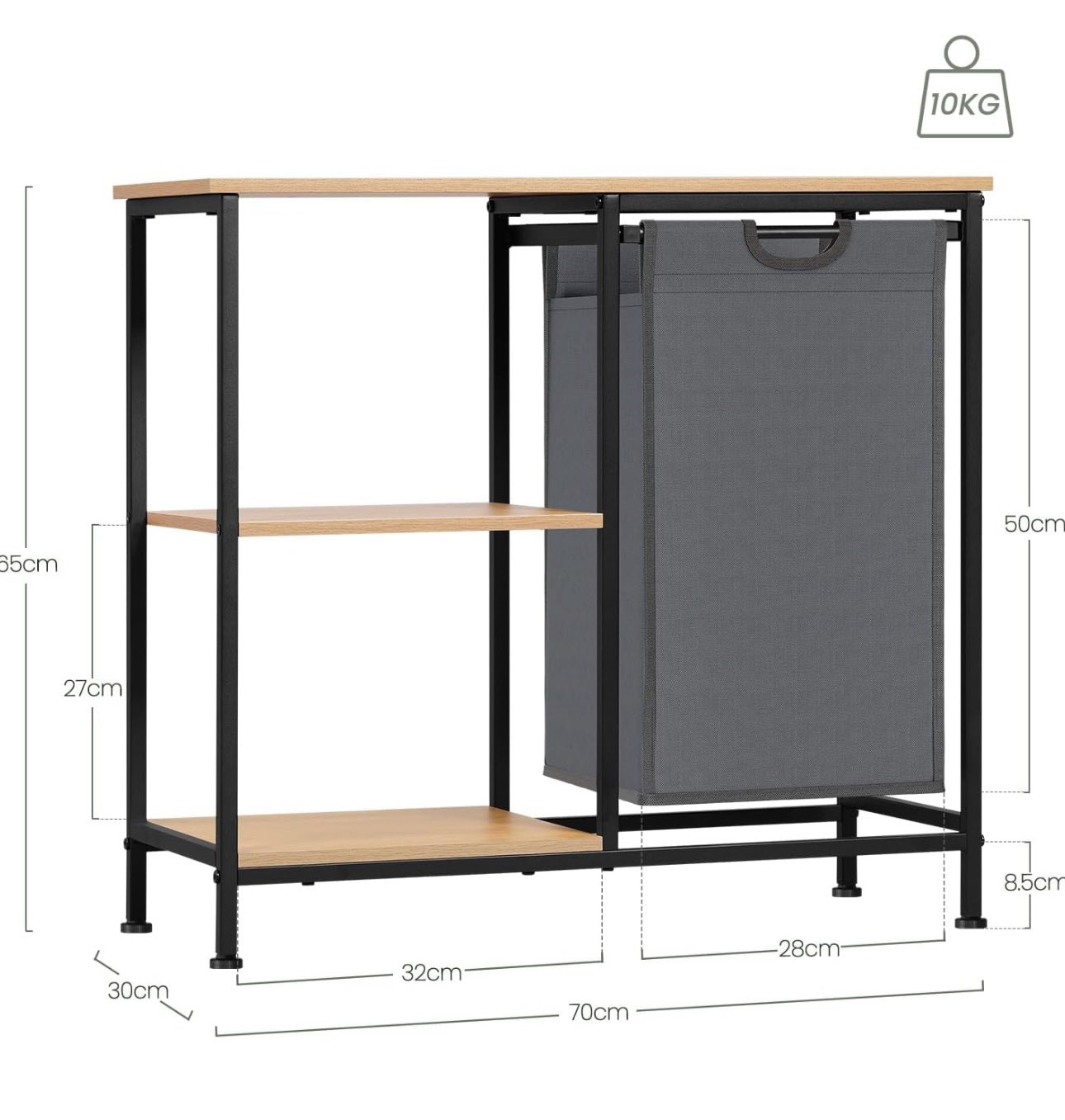 Vonios kambario lentyna su skalbinių krepšiu, 70 x 65 x 30 cm