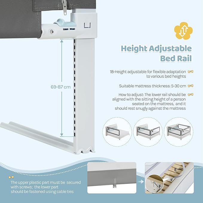 WOLTU viršutinio ir apatinio vamzdžio atskyrimas: šis apsauginio bortelio dizainas leidžia nuimti viršutinį vamzdį ir palikti jį prie čiužinio šono. Taip nebereikės jaudintis, kad atsisėdus ant lovos krašto vamzdis bus prispaustas.