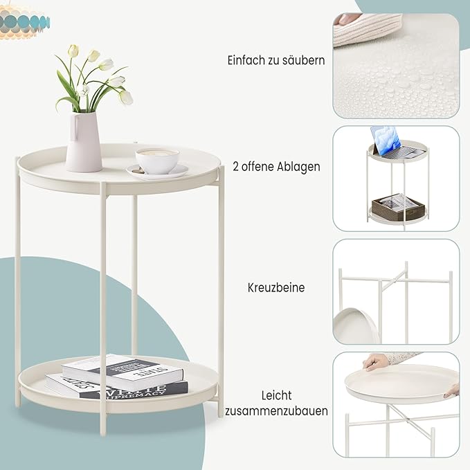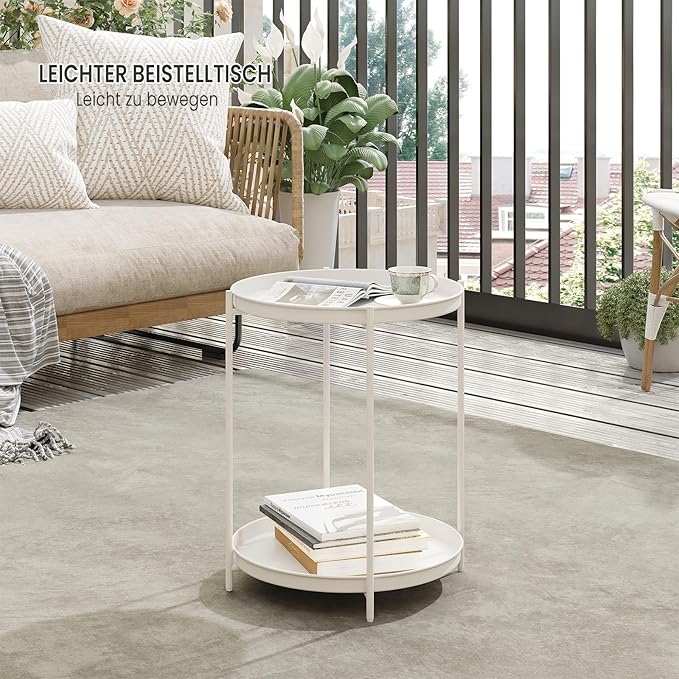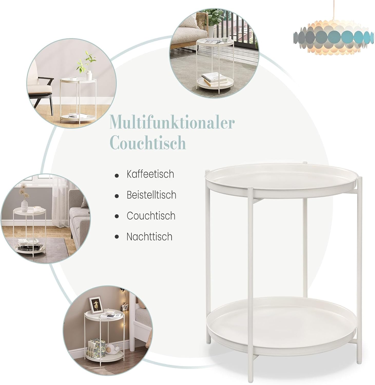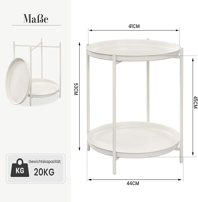 Talpus ir praktiškas: staliukas turi 2 metalinius padėklus (Ø44 cm), kurie suteikia pakankamai vietos kavai, dekoracijoms ar kasdieniams daiktams laikyti. Puikiai tinka mažoms erdvėms.