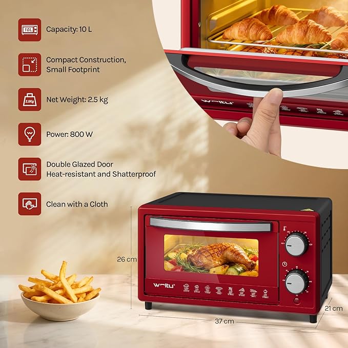 Inovatyvus dizainas – orkaitė sukurta su 3 kepimo aukščiais, reguliuojamu laikmačiu, grotelėmis kepimui ir kepimo skardomis, taip pat su išimamu trupinių padėklu, kad būtų lengva valyti. Plonas ir kompaktiškas dizainas puikiai tinka jūsų virtuvės erdvei.