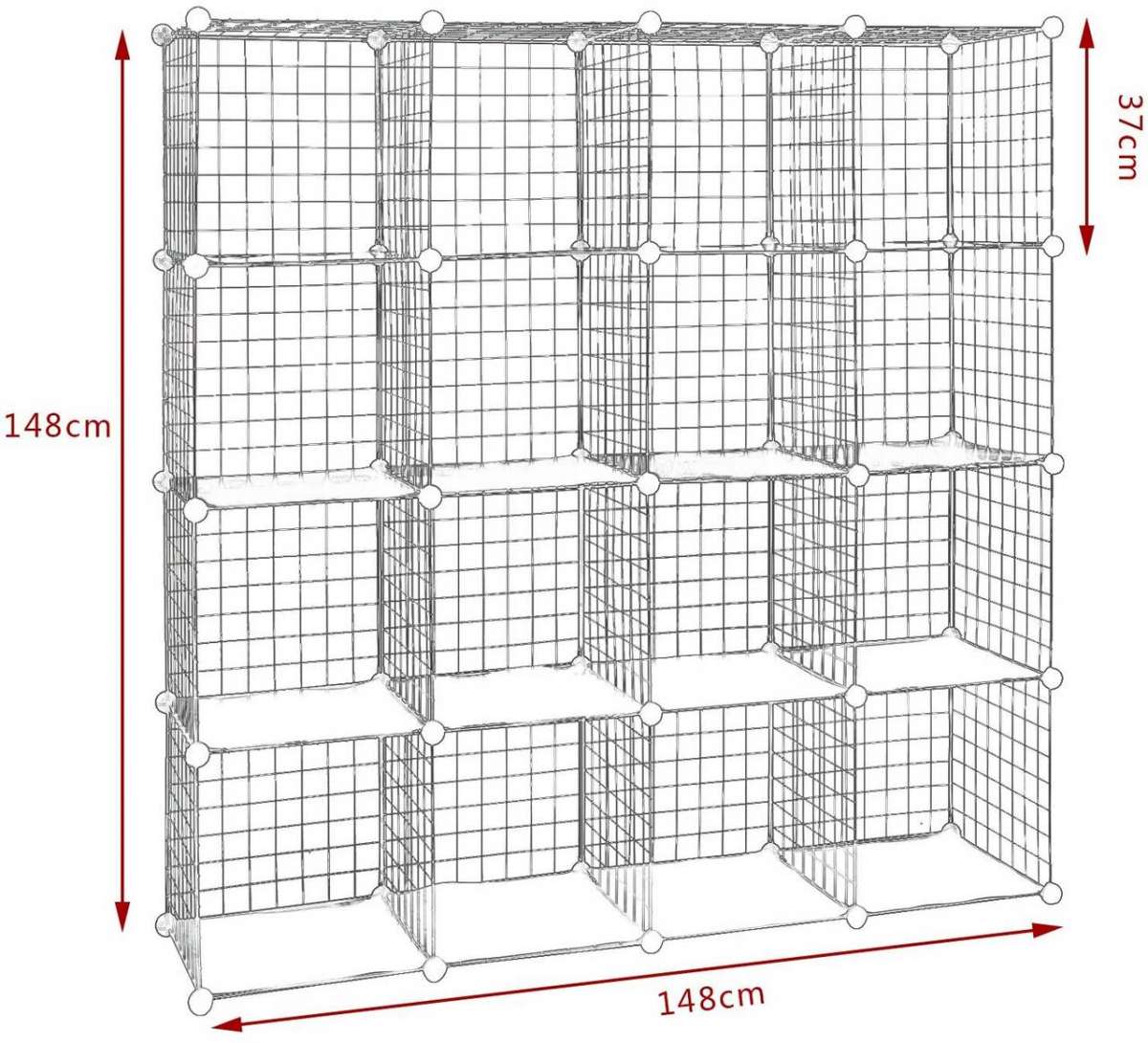 Tvirta konstrukcija: pagaminta iš metalinių grotelių ir ABS plastikinių jungčių, todėl yra stabili ir patikima. Vienas skyrius atlaiko iki 10 kg.