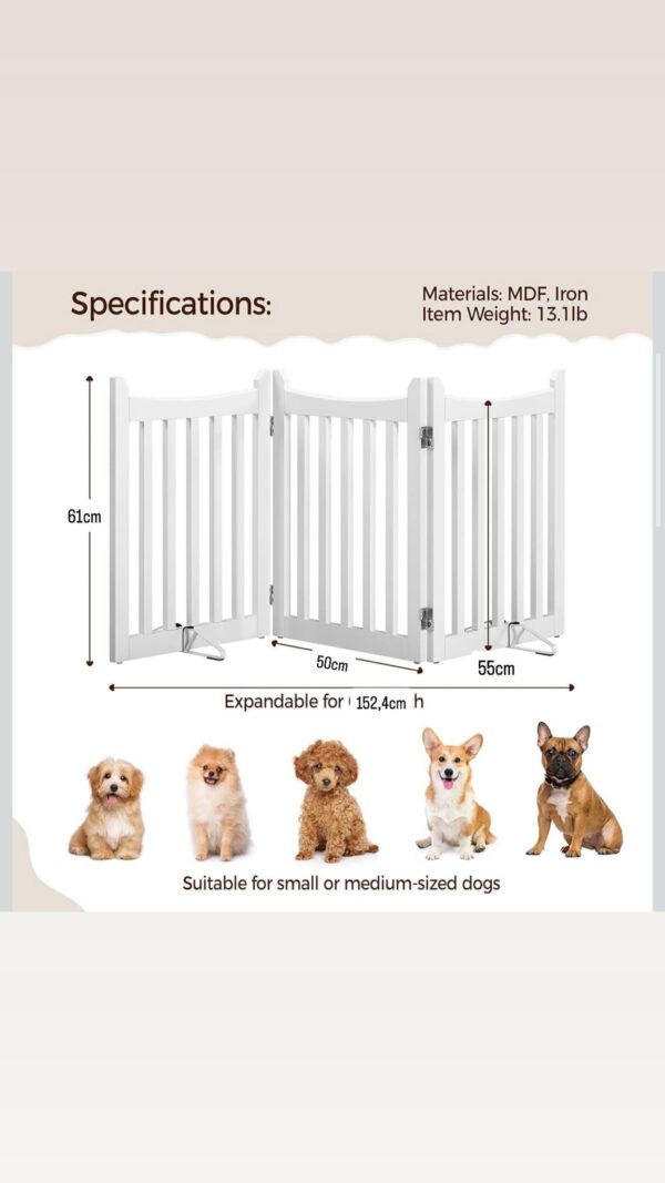 3 dalių gyvūnų užtvaras pagamintas iš 18 mm storio MDF plokščių, sudarančių tvirtą medinį rėmą, kuris patikimai sulaiko augintinius.
