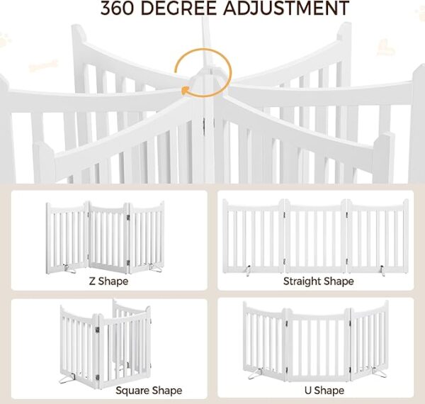 Lankstus sulankstymas: užtvaras turi 360° pasukamus vyrius, leidžiančius jį sulenkti į abi puses ir pritaikyti prie įvairių erdvių ar angų dydžių. Kai nenaudojamas – lengvai sulankstomas ir sandėliuojamas.