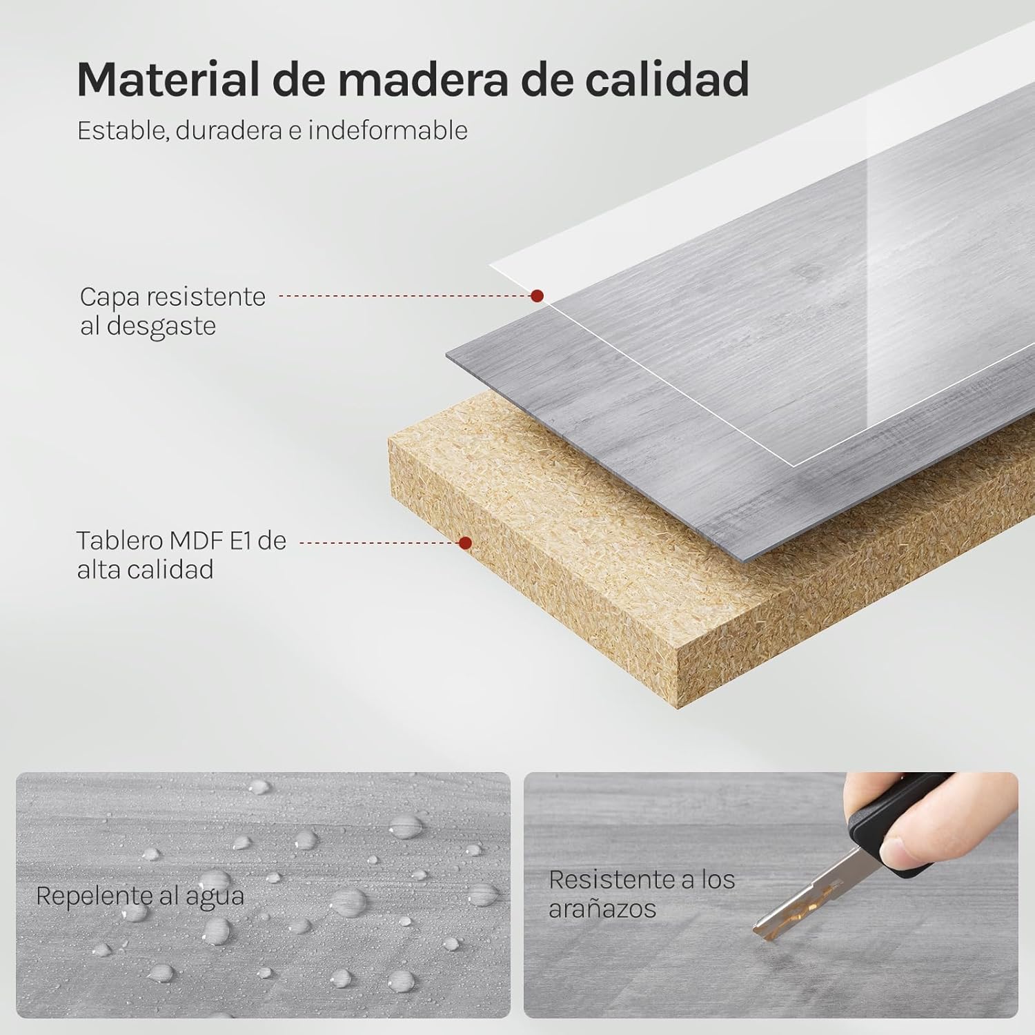 Aukštos kokybės medžiaga: pakabinama lentyna pagaminta iš sustiprintos medienos plaušo plokštės su gražia ir lygaus paviršiaus medienos imitacijos danga. Ji atspari drėgmei ir vandeniui, lengvai valoma ir nesideformuoja.