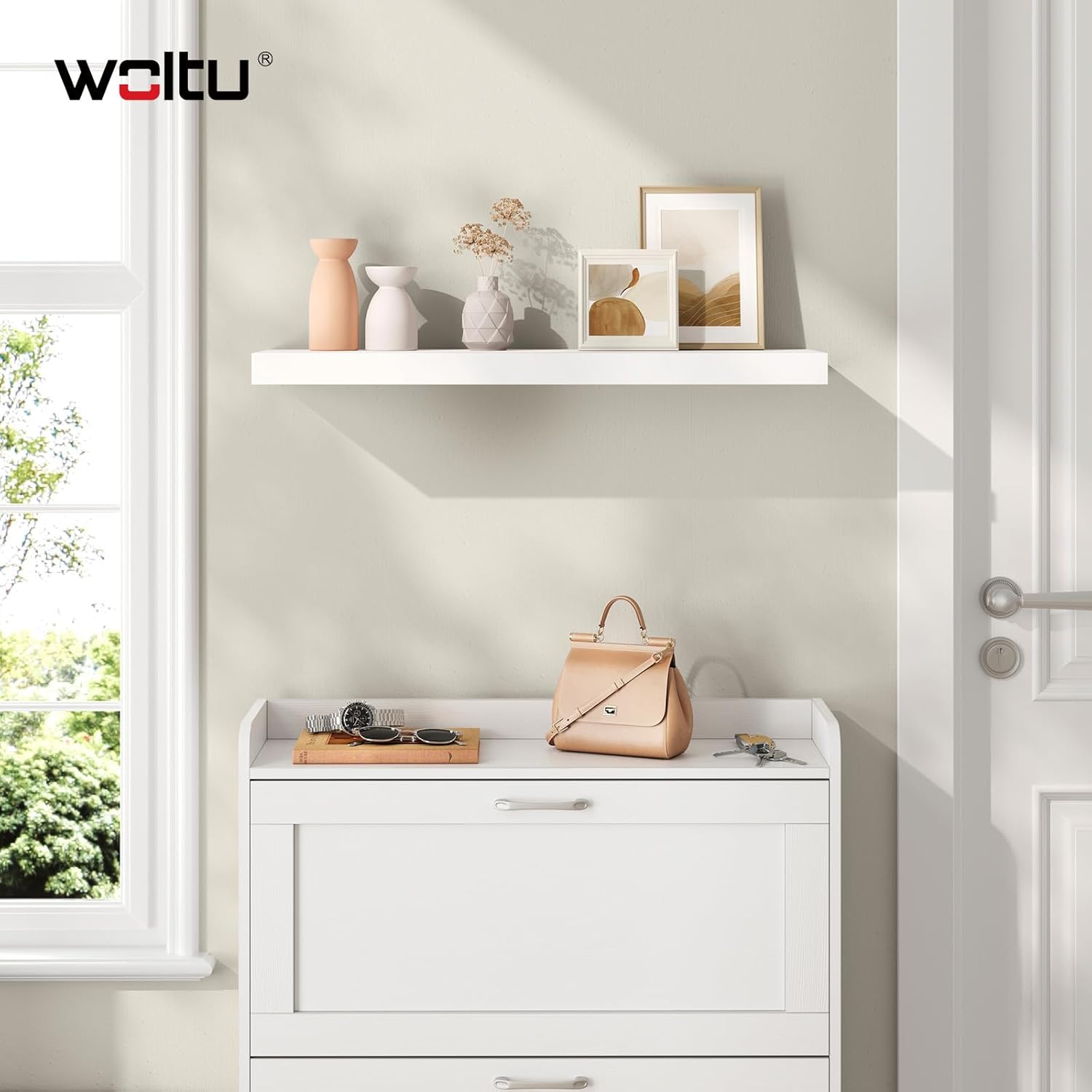 Padeda palaikyti tvarką: lentynos leidžia maksimaliai išnaudoti sienos erdvę ir suteikia papildomos vietos namų daiktams laikyti, todėl kambarys išlieka tvarkingas.