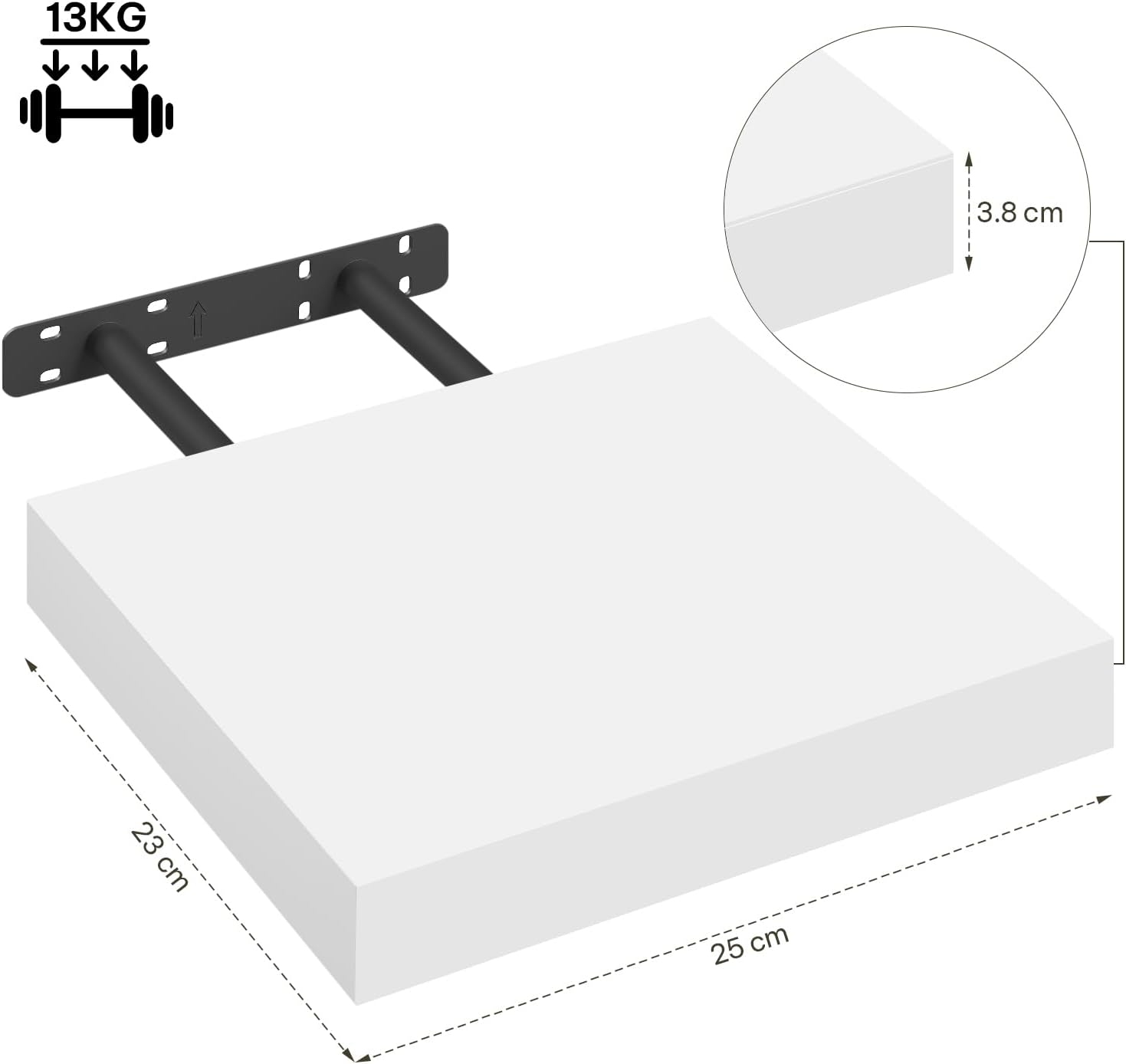 Lengvas montavimas: paslėpta tvirtinimo sistema (be matomų laikiklių) suteikia estetišką „plaukiojančios“ lentynos efektą. Komplekte yra visi reikalingi tvirtinimo elementai ir instrukcija, todėl montavimas yra greitas ir paprastas.