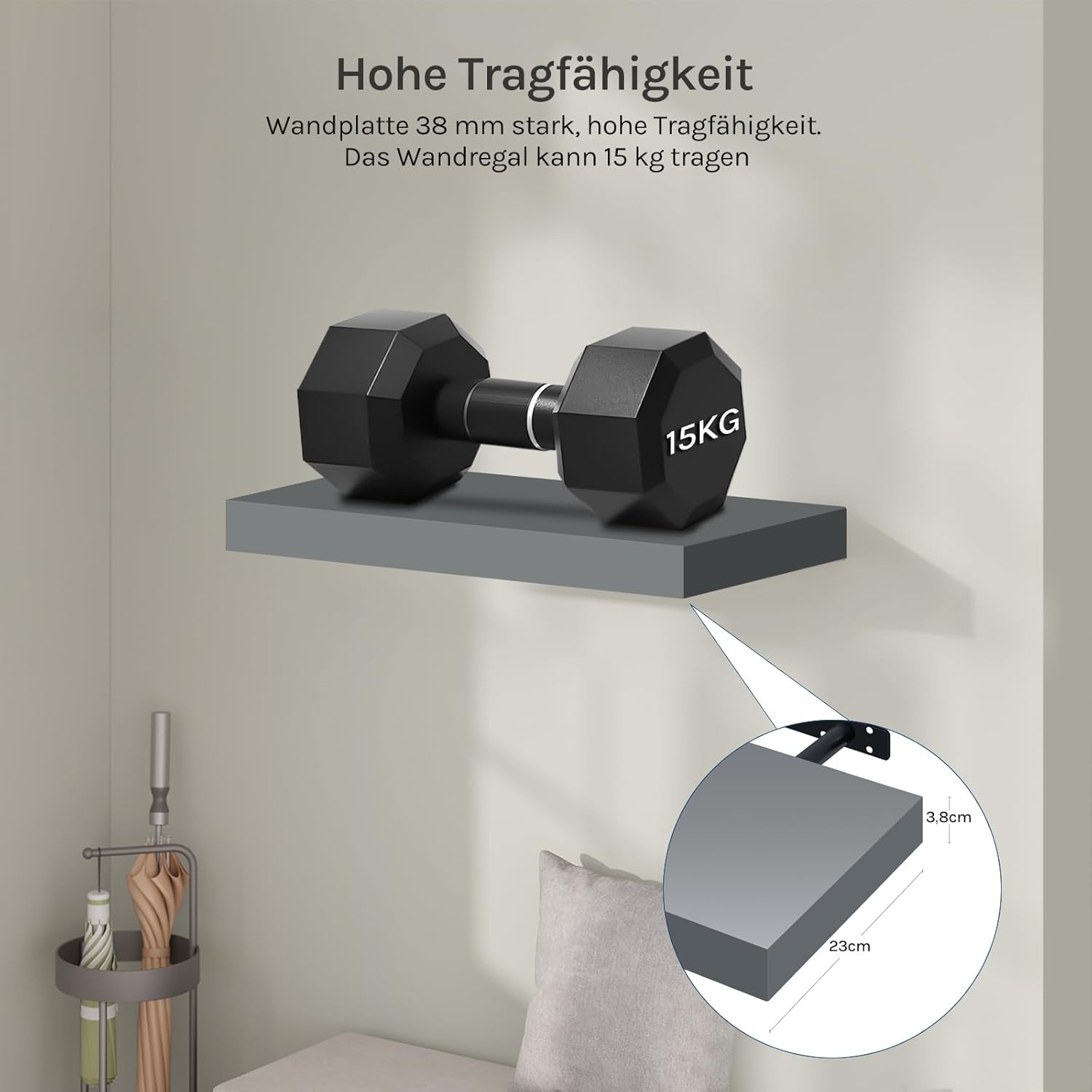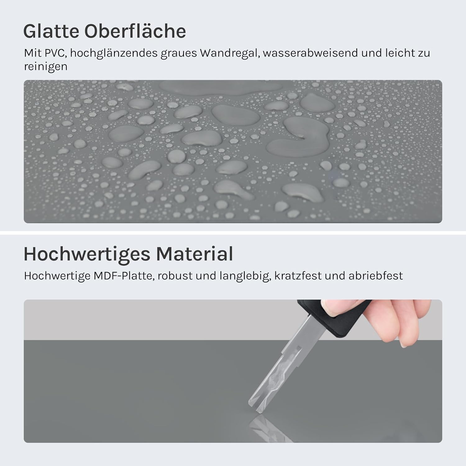 Aukštos kokybės medžiagos: lentyna pagaminta iš kokybiško MDF su lygiu paviršiumi, todėl yra atspari drėgmei, lengvai valoma ir išlaiko formą. Tvirtas metalinis laikiklis užtikrina stabilumą ir leidžia išlaikyti iki 15 kg svorį.