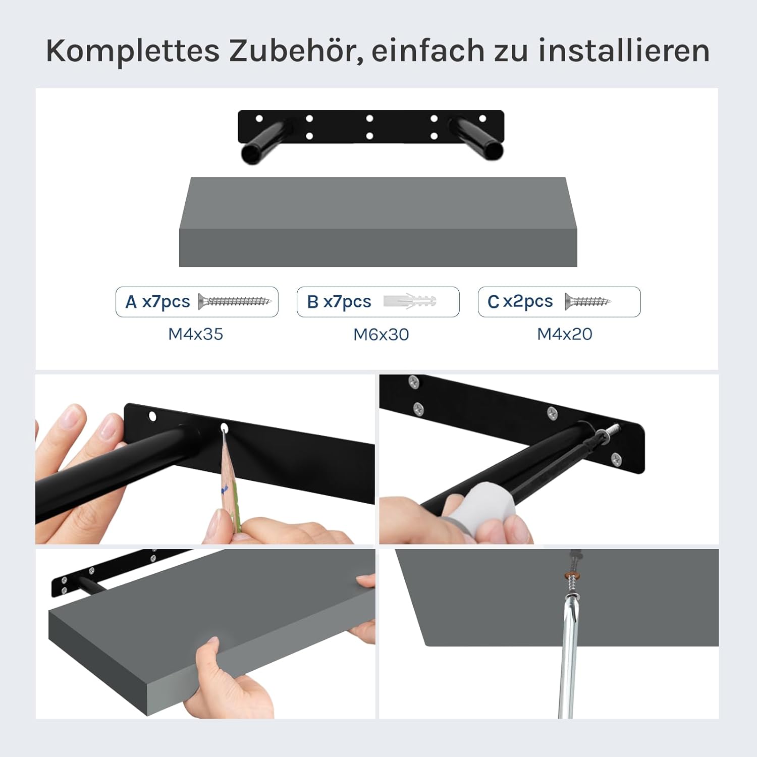Greitas montavimas: komplekte yra instrukcija, todėl lentyną lengva sumontuoti. Naudojant gulsčiuką montavimas bus dar paprastesnis ir tikslesnis.