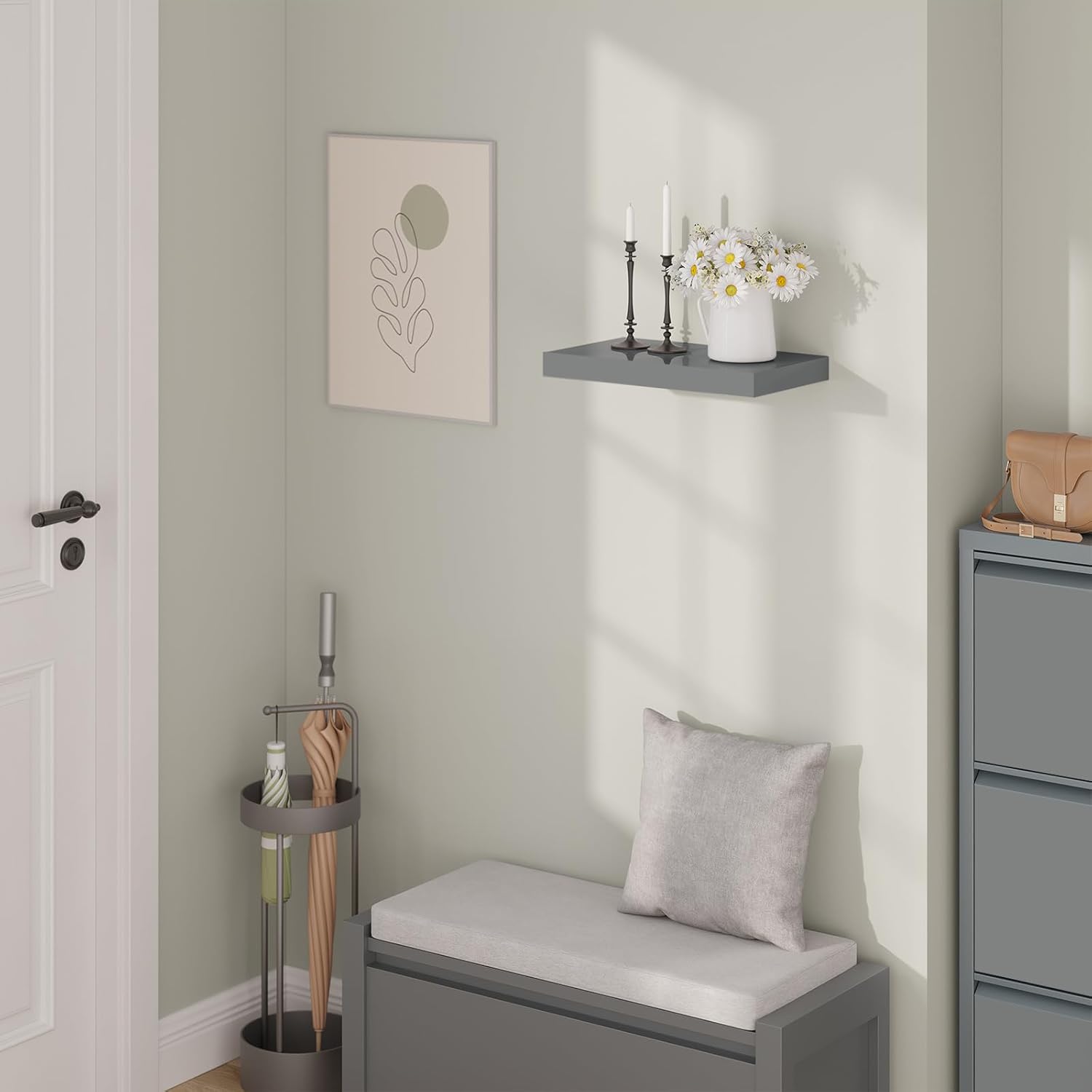 Dekoratyvi ir praktiška: blizgios pilkos spalvos minimalistinio dizaino lentyna gali būti naudojama atskirai arba derinama su kitomis. Tinka svetainei, darbo kambariui, virtuvei ar prieškambariui.