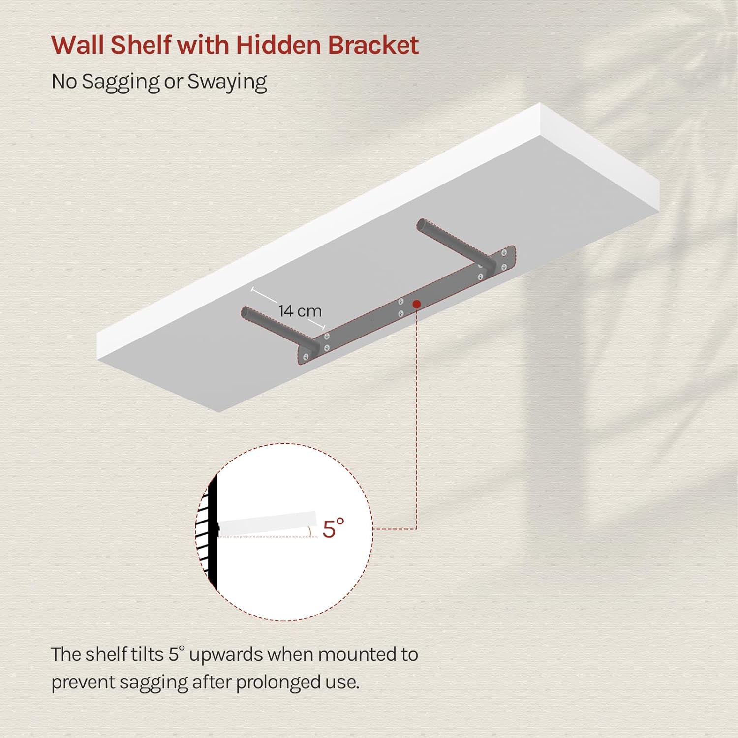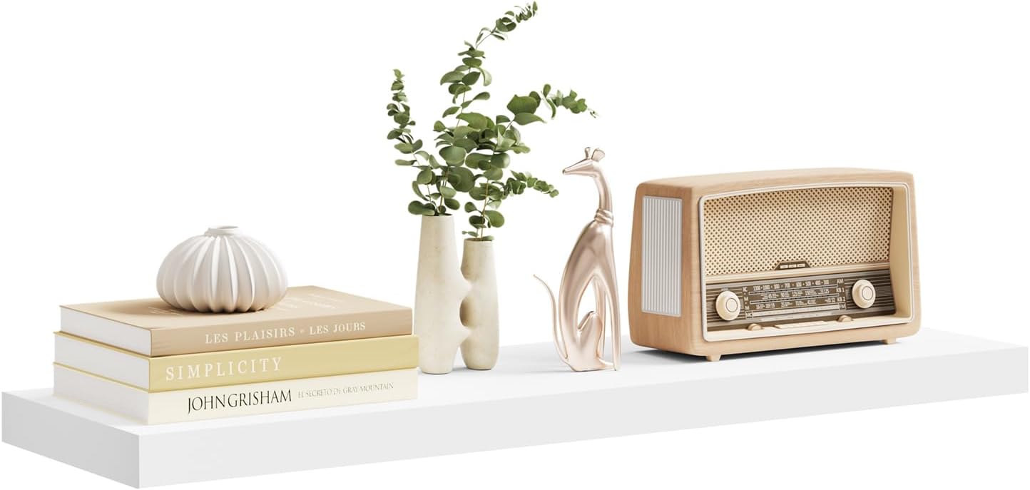 Lengvas montavimas: paslėpta tvirtinimo sistema (be matomų laikiklių) suteikia estetišką „plaukiojančios“ lentynos efektą. Komplekte yra visi reikalingi tvirtinimo elementai ir instrukcija, todėl montavimas yra greitas ir paprastas.