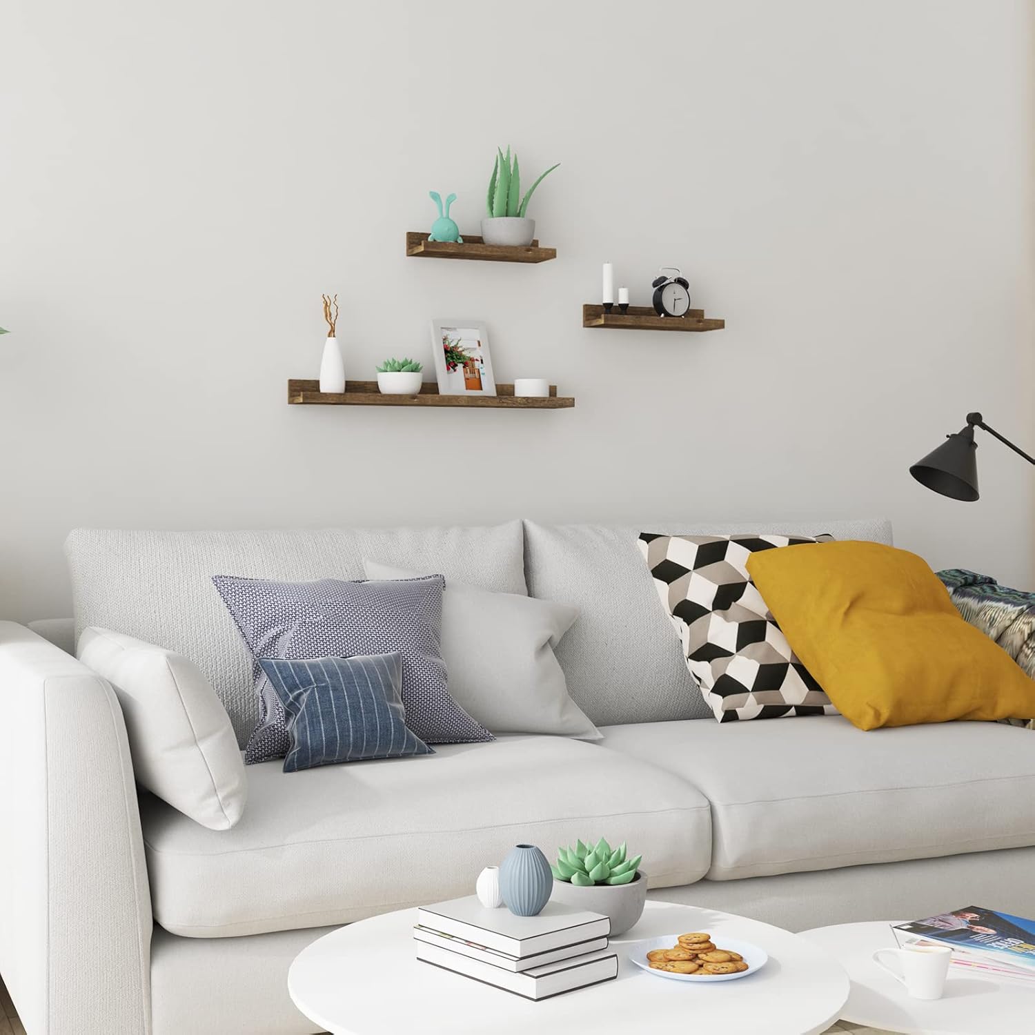 Lankstus derinimas: atviras dizainas leidžia laikyti skirtingo aukščio ir dydžio daiktus. Kelias lentynas galima derinti tarpusavyje ir sukurti praktišką bei dekoratyvų sienos sprendimą.
