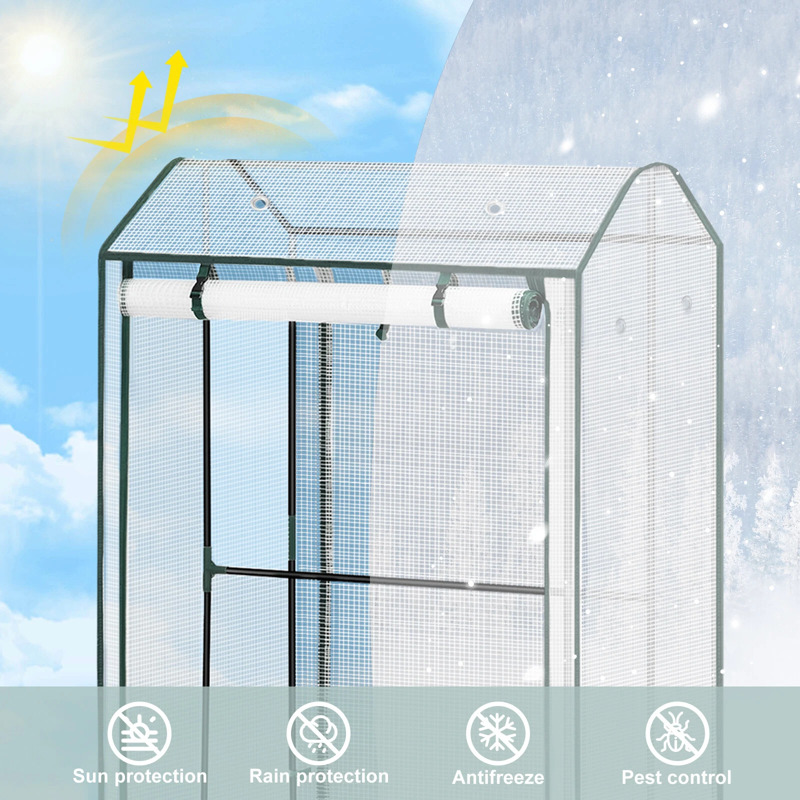 Geresnė ventiliacija: šiltnamis turi vienas priekinėje pusėje esančias užtrauktuku uždaromas, susukamas arkos formos duris. Jas galima atidaryti ir pritvirtinti virvelėmis, kad būtų lengviau reguliuoti vidinį klimatą arba prižiūrėti augalus. Apačioje esančios 4 nuimamos tinklinės lentynos puikiai tinka vazoniniams augalams laikyti – jos izoliuoja augalus nuo žemės, saugo nuo drėgmės ir vabzdžių bei skatina augimą.