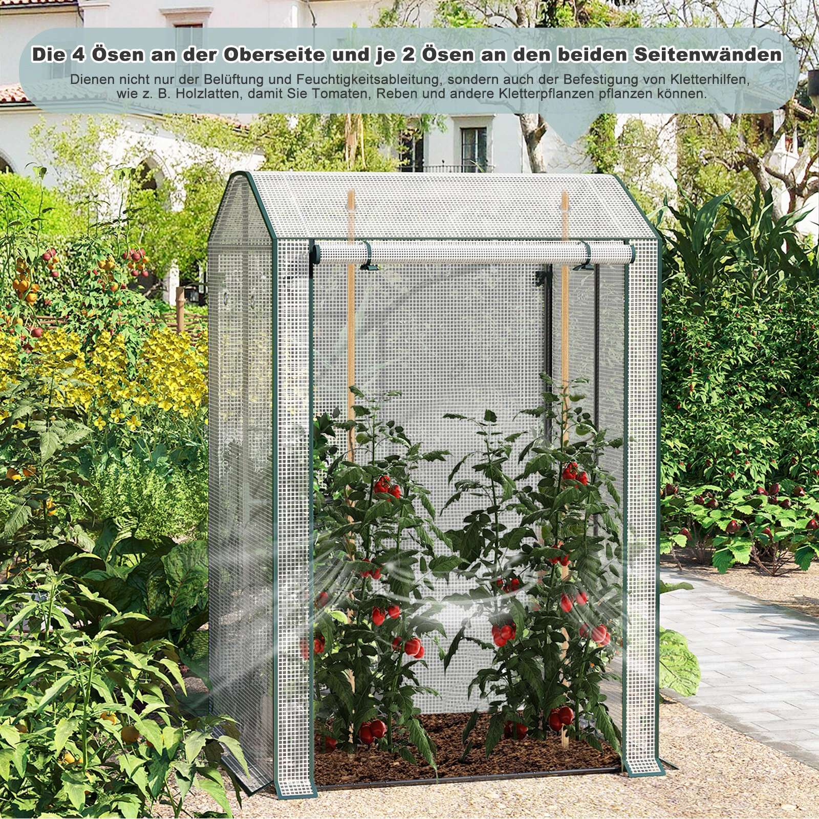 Optimalus klimatas augalams: šis plėvelinis šiltnamis efektyviai apsaugo augalus nuo šalčio, šilumos praradimo, šalnų, lietaus ir UV spindulių, todėl jauni ar jautrūs augalai gali augti palankiomis sąlygomis. Viršuje esančios 4 kilpos ir po 2 kilpas šoninėse sienelėse skirtos ne tik ventiliacijai ir drėgmės pašalinimui, bet ir atramoms pritvirtinti, pavyzdžiui, medinėms lazdoms pomidorams, vynmedžiams ar kitiems vijokliniams augalams.
