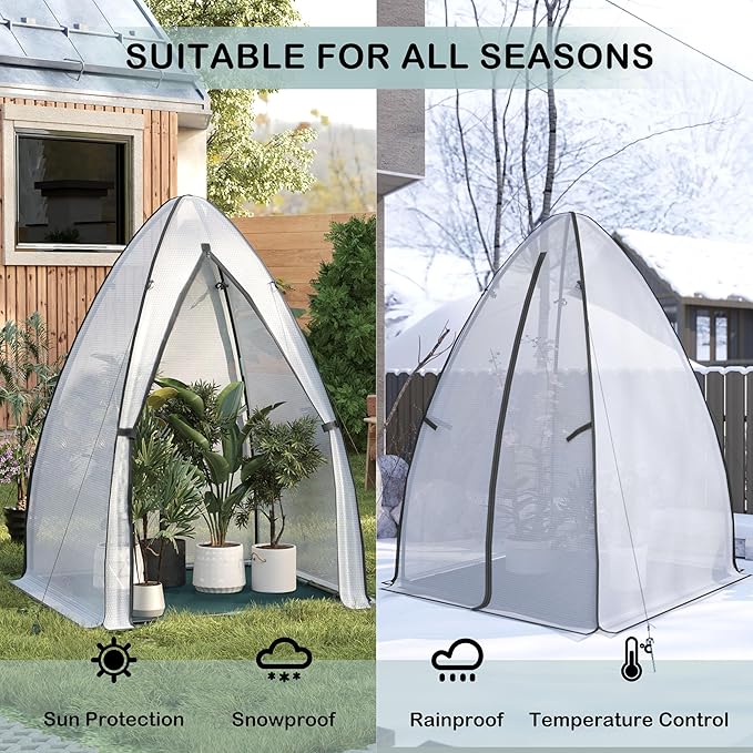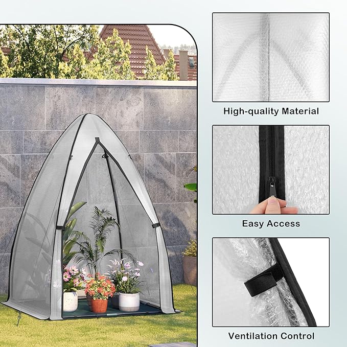 Mini šiltnamio rėmas pagamintas iš 16 mm skersmens, korozijai atsparių plieninių vamzdžių. 4 diržai ir 4 tvirtinimo virvės užtikrina stabilumą net esant prastoms oro sąlygoms ir patikimai apsaugo augalus.