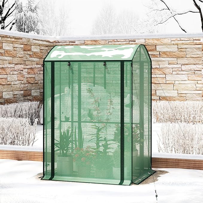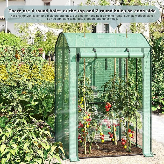 Šeši vėdinimo langeliai ir priekinės susukamos durys su užtrauktuku bei tvirtinimo dirželiais leidžia lengvai reguliuoti temperatūrą. Keturi perkeliamieji pagrindo tinkleliai padeda atskirti augalus nuo dirvos, sumažina drėgmę ir apsaugo nuo vabzdžių.