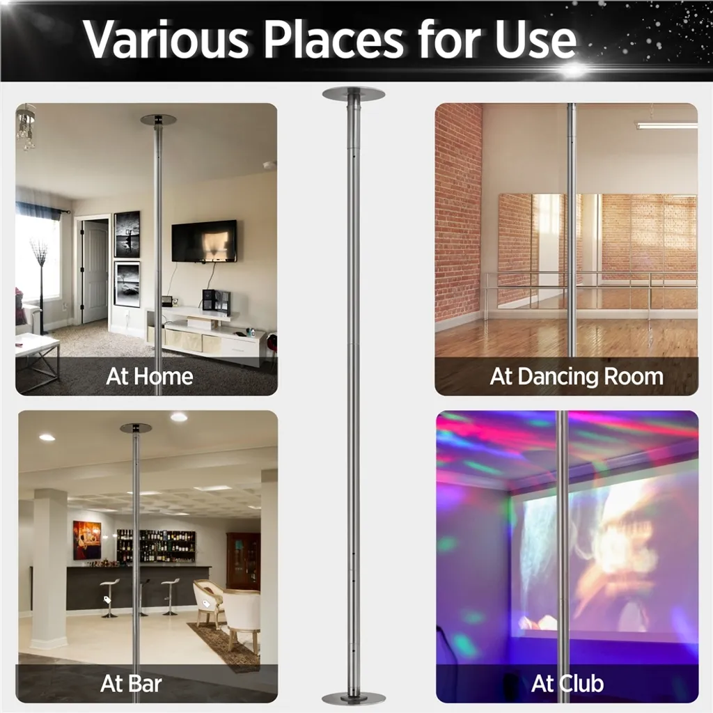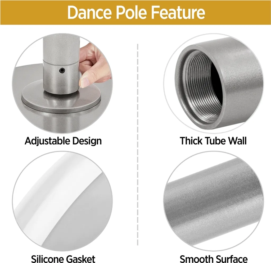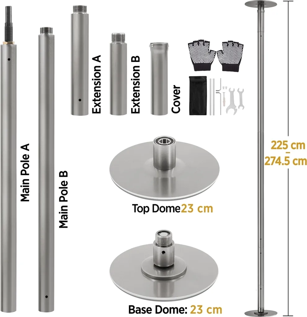 Lengvas montavimas: Komplekte yra viena šokio stulpas, dvi prailginimo dalys ir visos reikalingos tvirtinimo detalės. Atkreipkite dėmesį, kad šis stulpas tvirtinamas prie lubų varžtais.