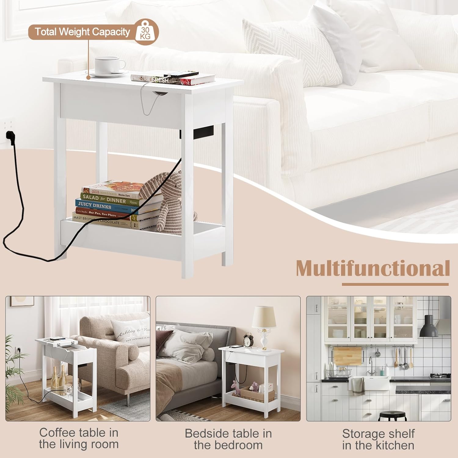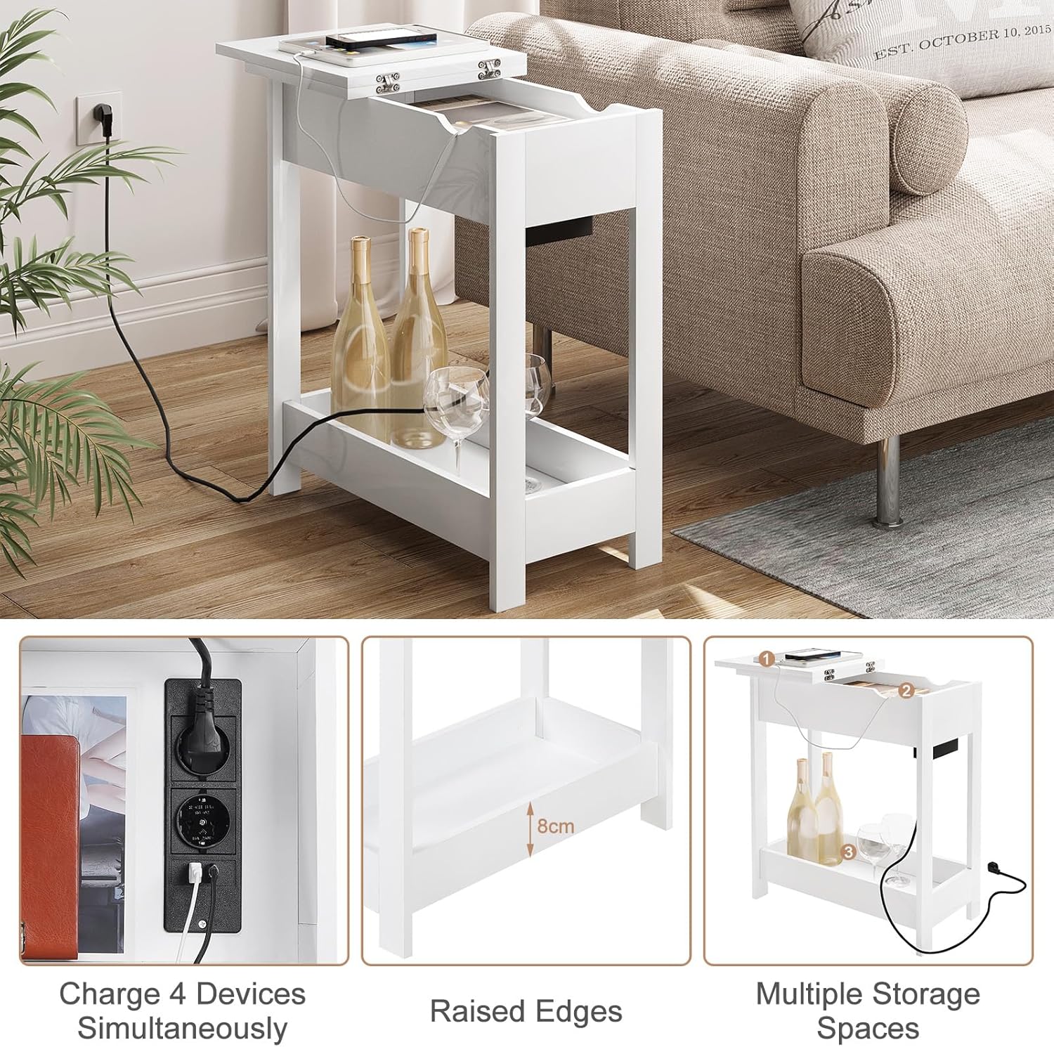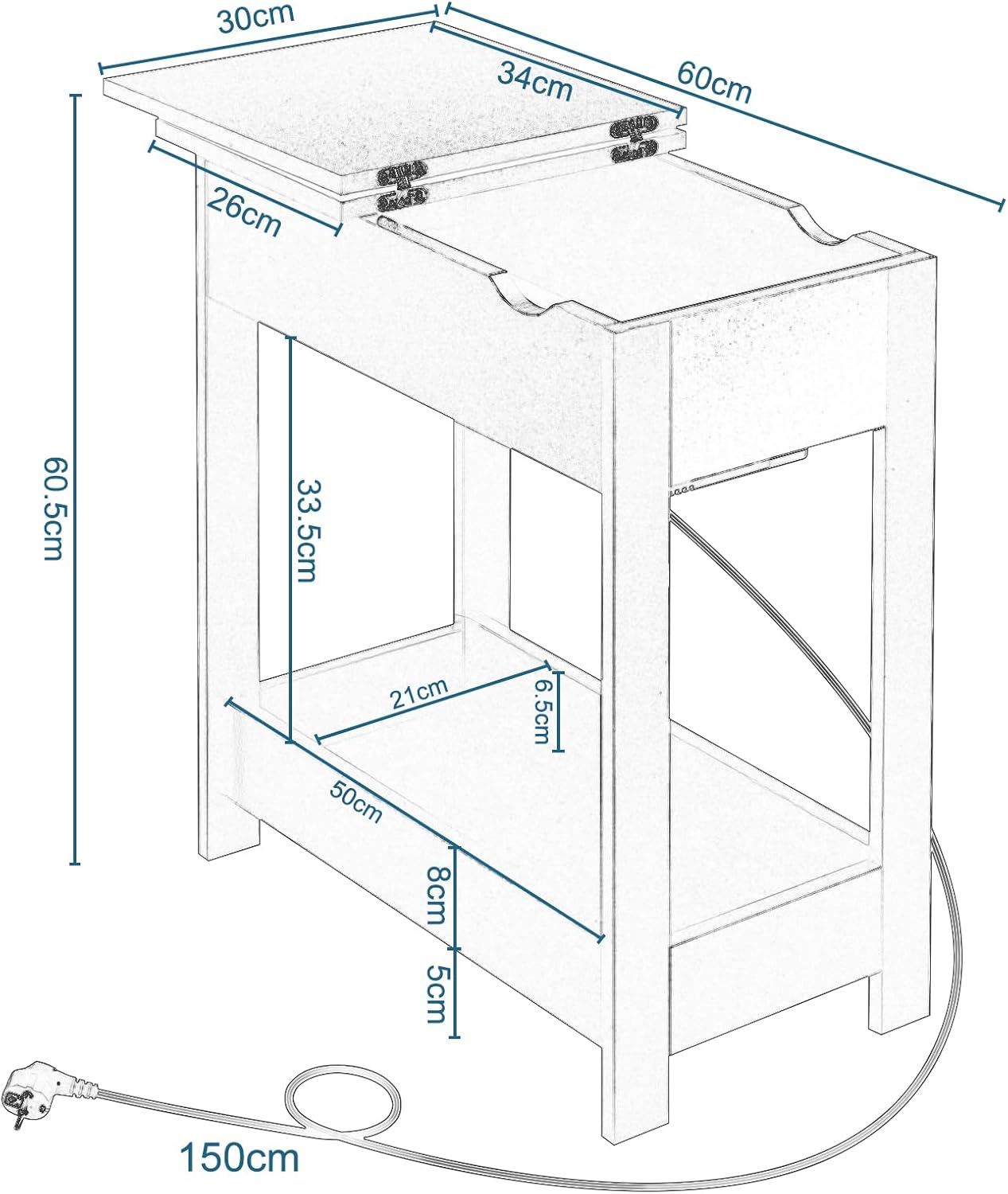 Šoninis staliukas su įkrovimo stotele: staliuke integruotas elektros lizdų blokas su 2 rozetėmis ir 2 USB jungtimis, todėl galite patogiai krauti telefonus, planšetes, nešiojamuosius kompiuterius ar lempas tiesiai ant stalo – patogu ir efektyvu.