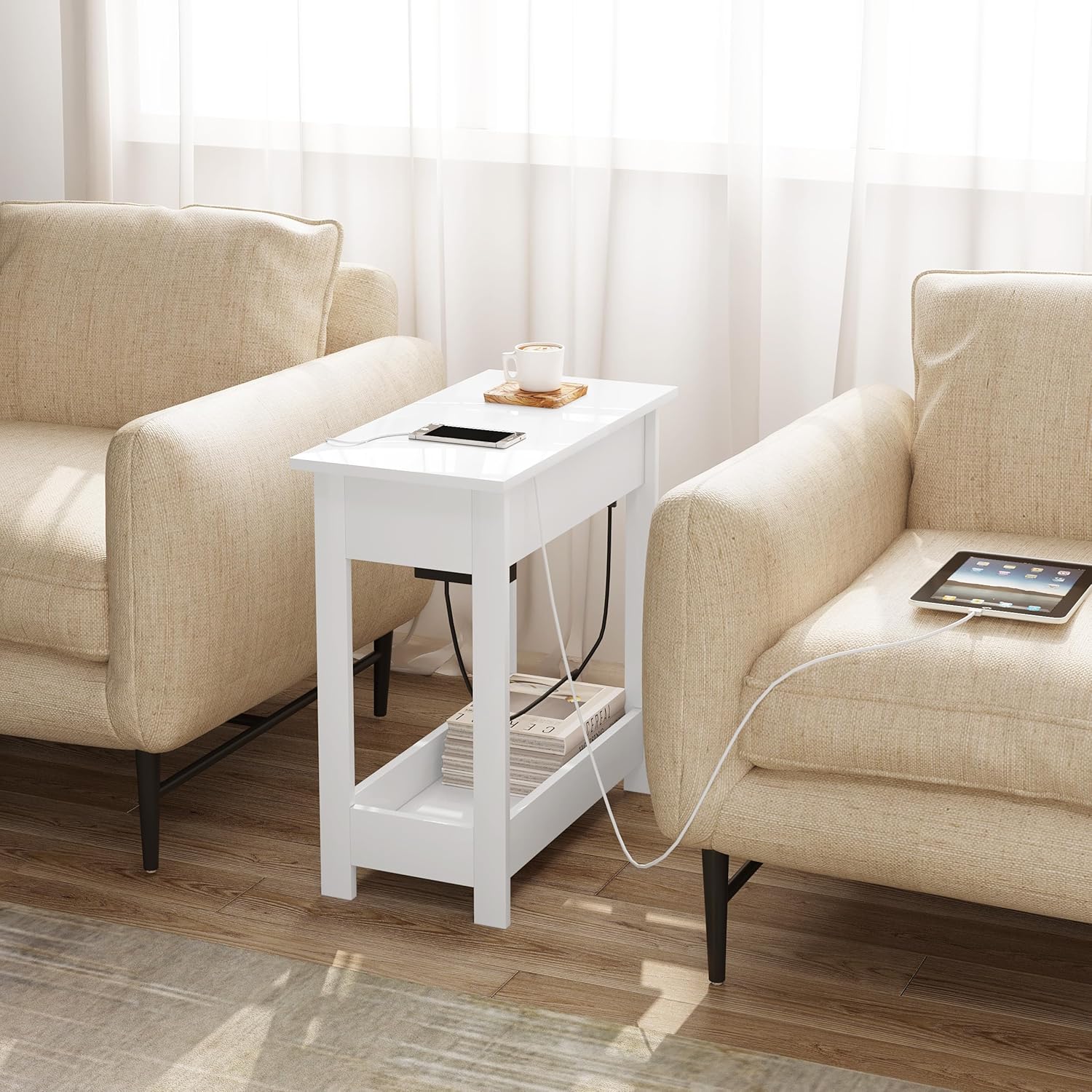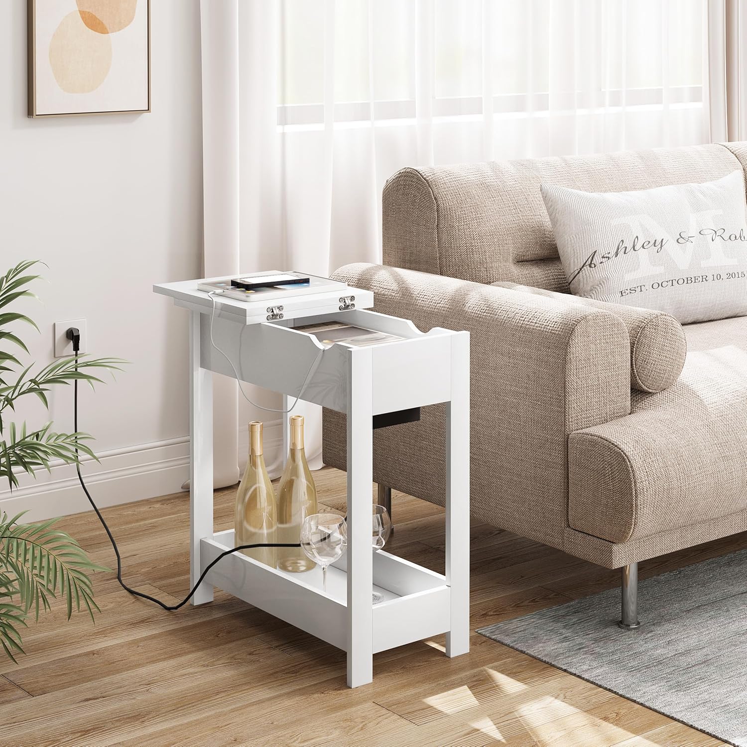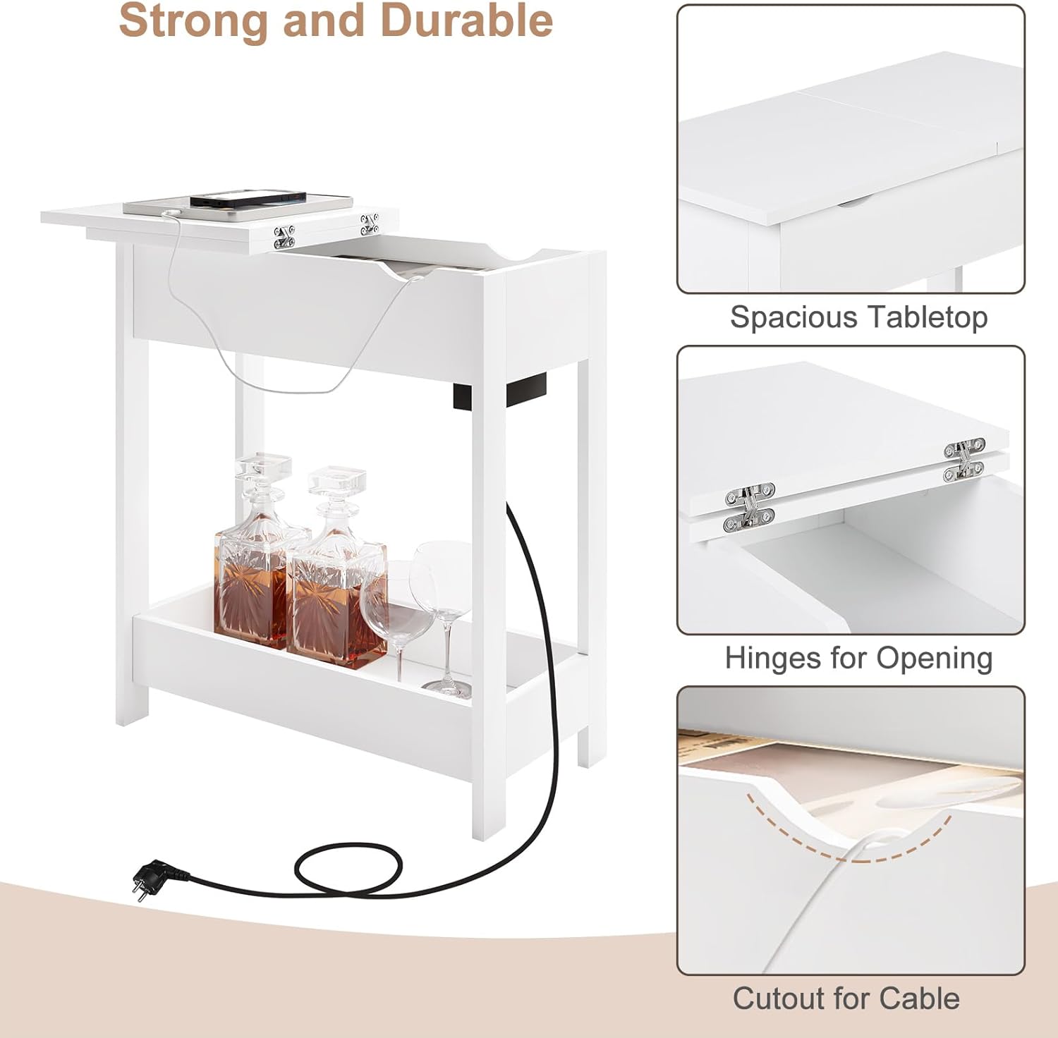 Šoninis staliukas su įkrovimo stotele: staliuke integruotas elektros lizdų blokas su 2 rozetėmis ir 2 USB jungtimis, todėl galite patogiai krauti telefonus, planšetes, nešiojamuosius kompiuterius ar lempas tiesiai ant stalo – patogu ir efektyvu.