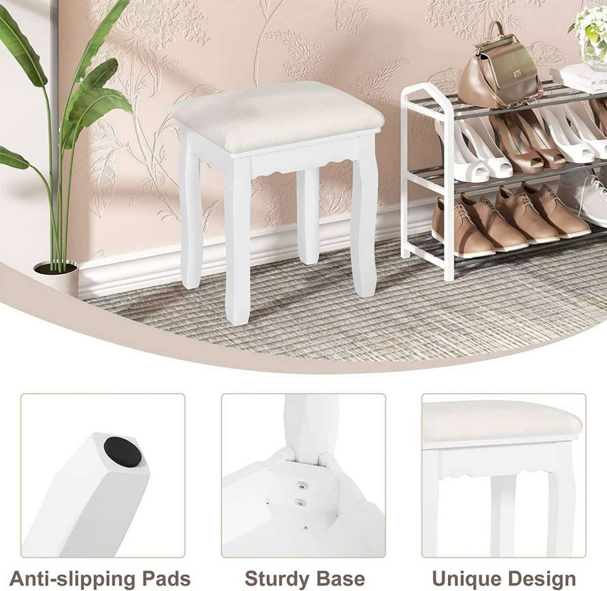 Patogi sėdynė: taburetė paminkštinta didelio tankio putomis ir aptraukta minkštu veliūru, todėl suteikia komfortą darantis makiažą, šukuosenas, ruošiantis išeiti ar atliekant odos priežiūrą prieš miegą.