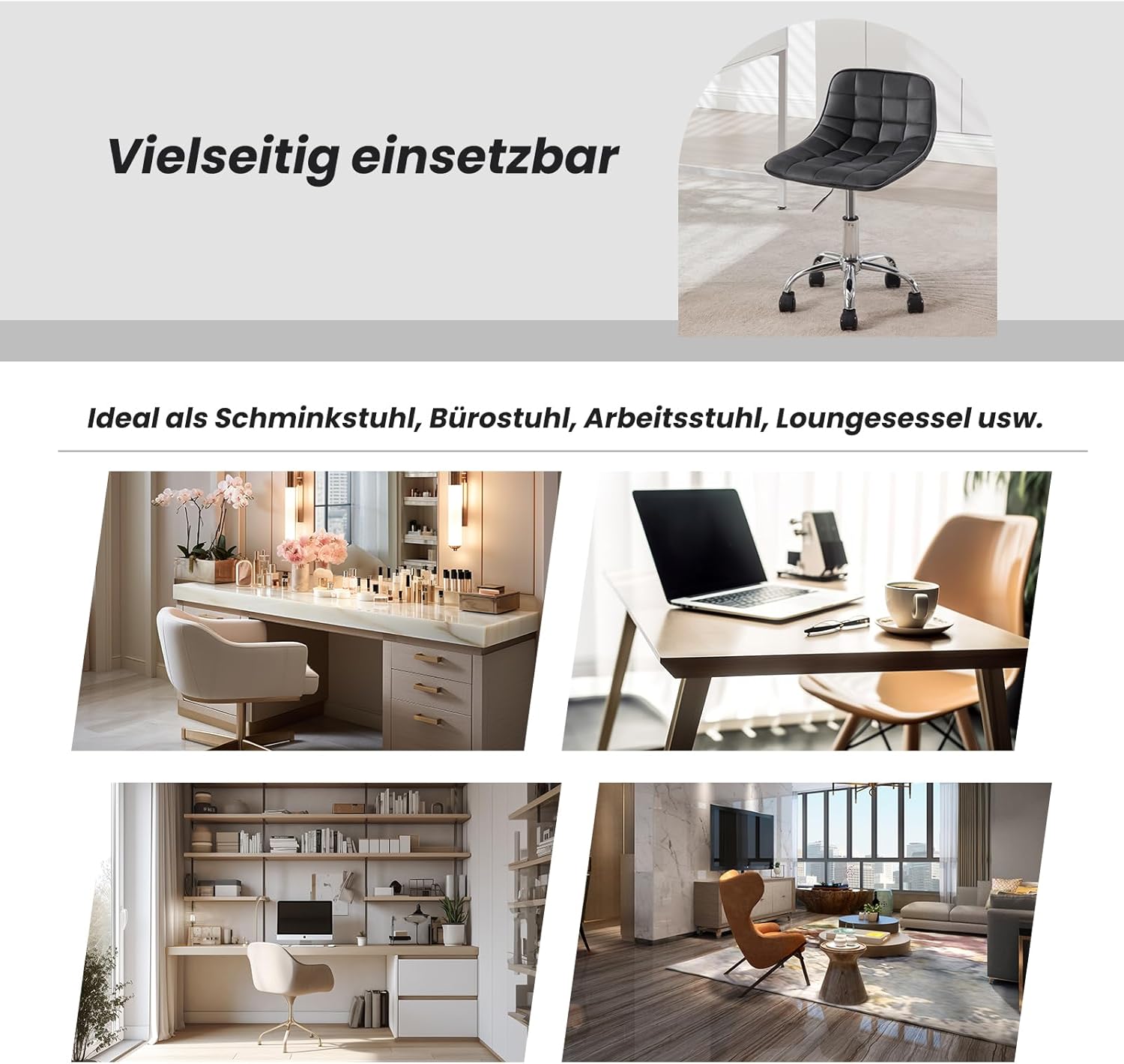 Praktiška ir universali: ši kompaktiška ir stilinga kėdė gali būti naudojama kaip makiažo kėdė, darbo ar biuro kėdė, vaiko rašomojo stalo kėdė ar universali darbo taburetė.