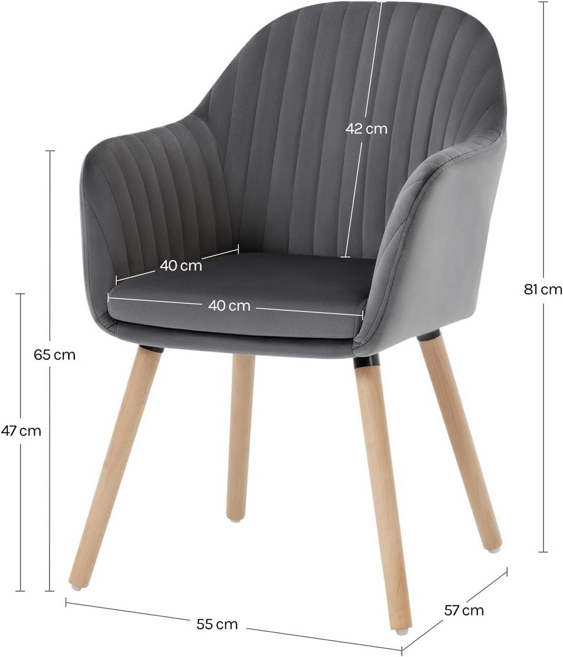 Universalus naudojimas: paprastas ir elegantiškas dizainas su vertikaliomis siūlėmis leidžia kėdei puikiai tikti įvairiose erdvėse – valgomajame, svetainėje, poilsio zonoje, prie makiažo staliuko ar namų biure.