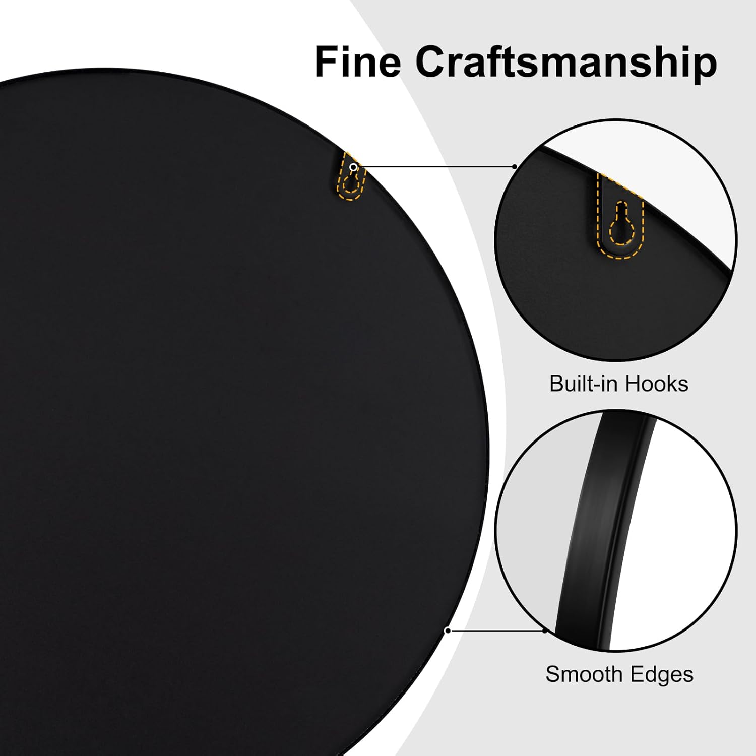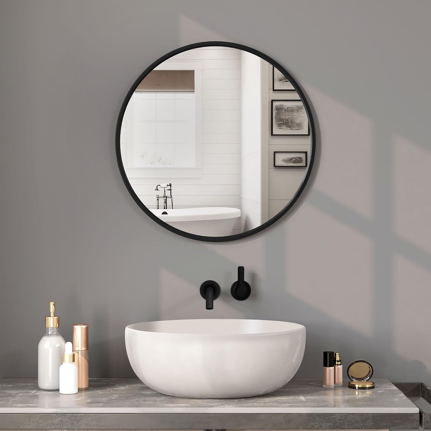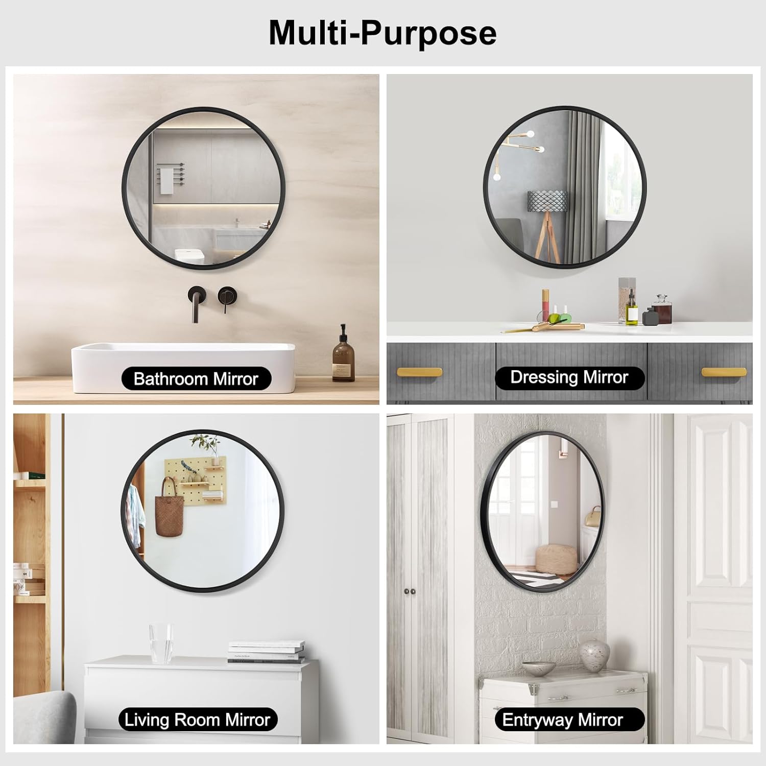 Universalus pritaikymas: apvalus sieninis veidrodis puikiai tinka voniai, miegamajam, prieškambariui, svetainei ar drabužinei. Modernus juodo metalo rėmas suteikia interjerui elegancijos ir stiliaus.
