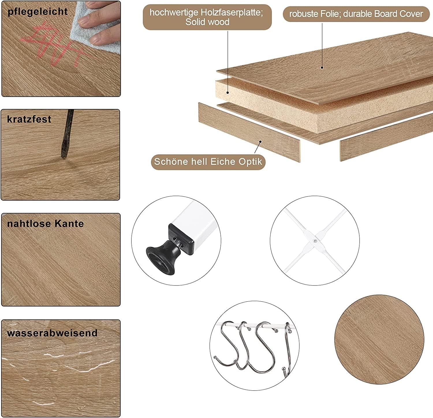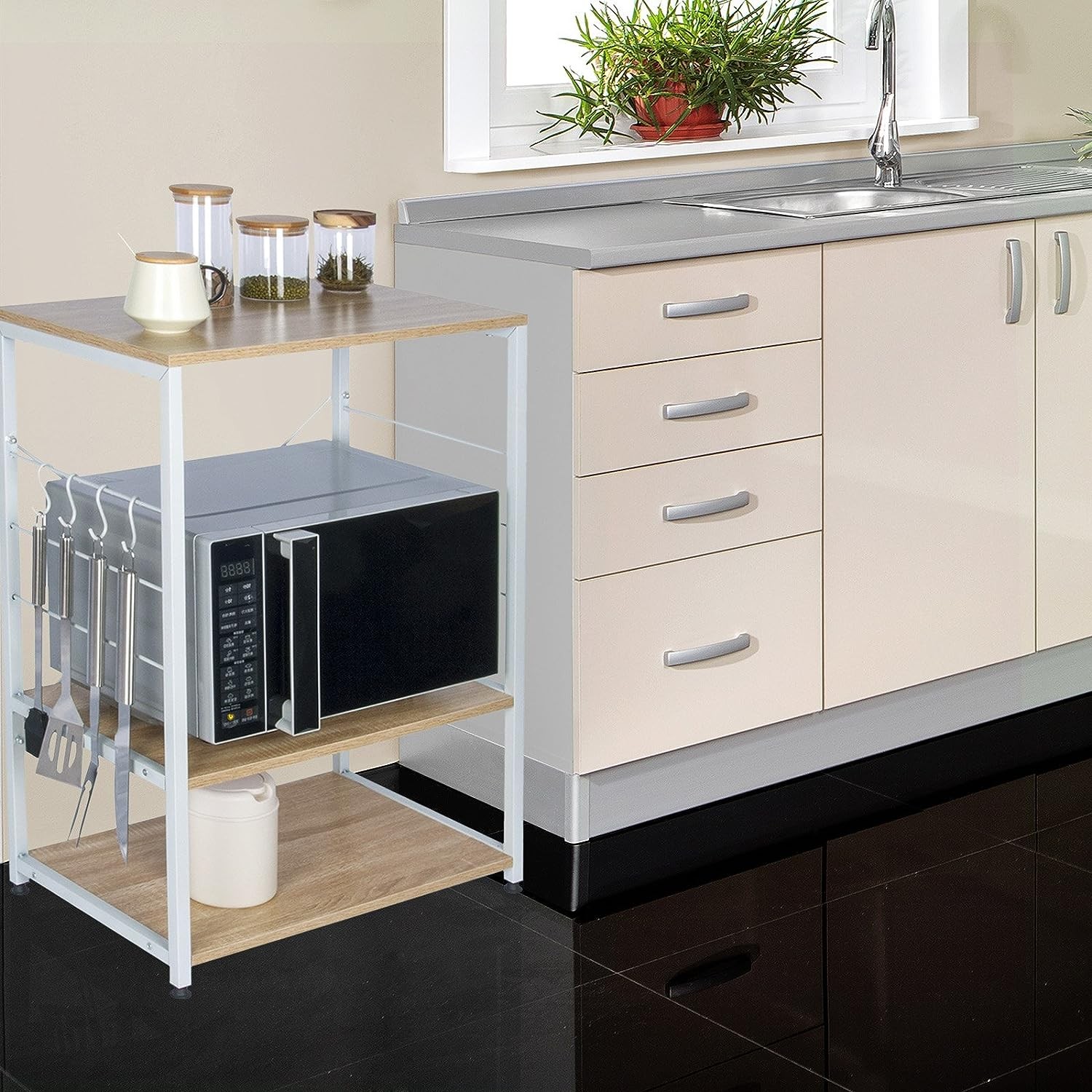 Medžiaga: metalas ir mediena Matmenys: 39 x 60 x 74,1 cm Svoris: 9,1 kg (neto) Lentynų skaičius: 3 Apatinių lentynų apkrova: iki 20 kg Viršutinės lentynos apkrova: iki 5 kg