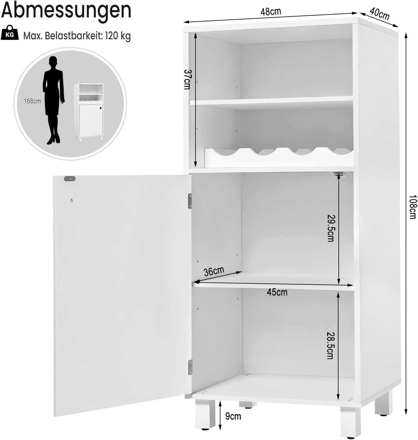 Lengvas surinkimas: iliustruota surinkimo instrukcija padės net pradedantiesiems greitai surinkti šią virtuvės komodą. Išėmus vyno lentyną, ją galima naudoti kaip daiktų laikymo spintelę ar knygų lentyną. Pagrindinė gaminio dalis pagaminta iš FSC sertifikuotos medienos.